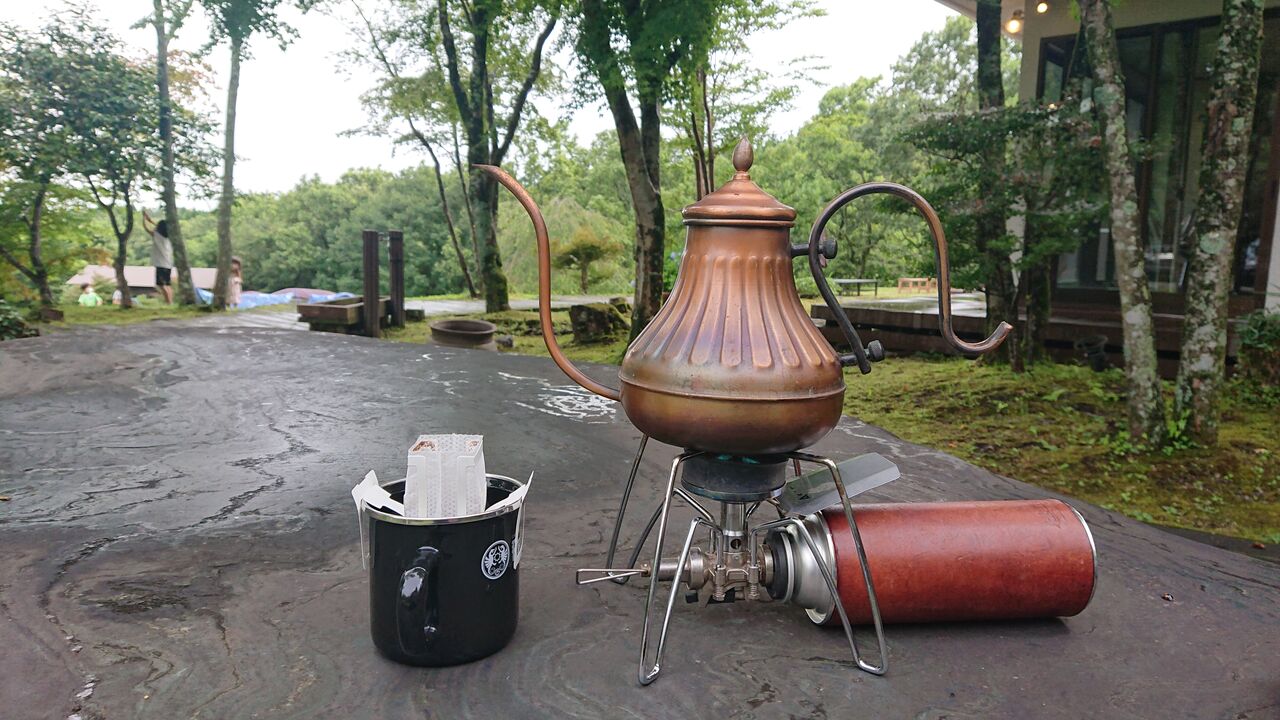 私は庭にある石のテーブルで、珈琲を淹れて飲みました。