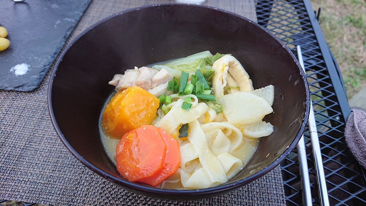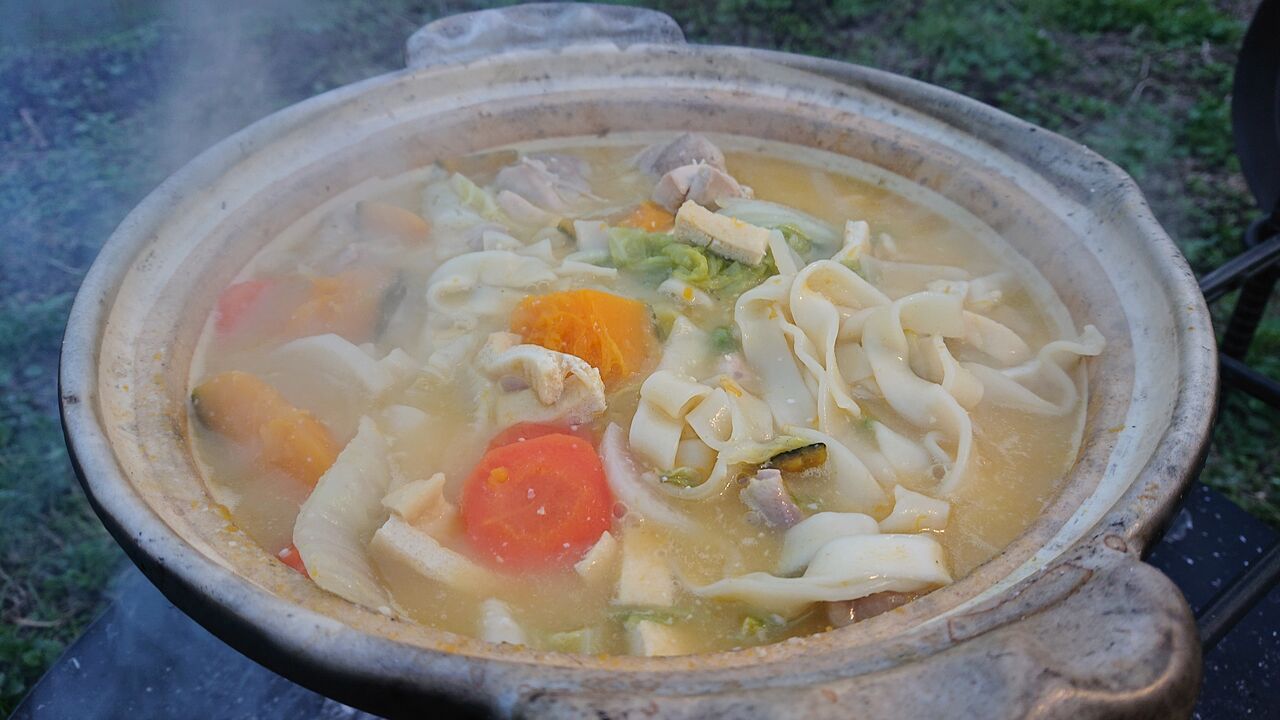 ほうとう、カボチャ、大根、人参、鶏肉、