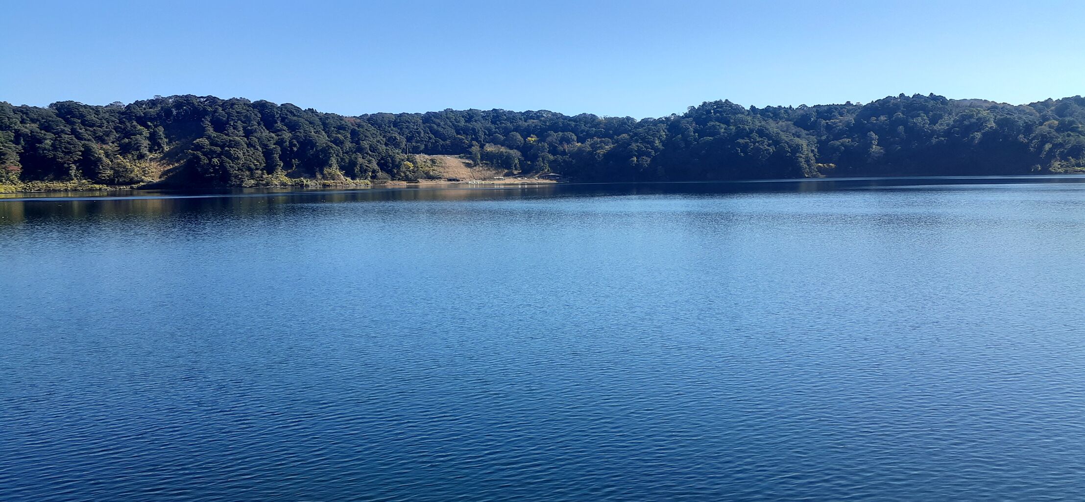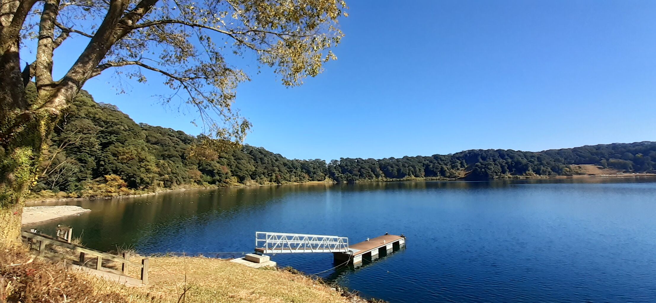 外周4kmに及ぶ眼前広がる湖を見ながら