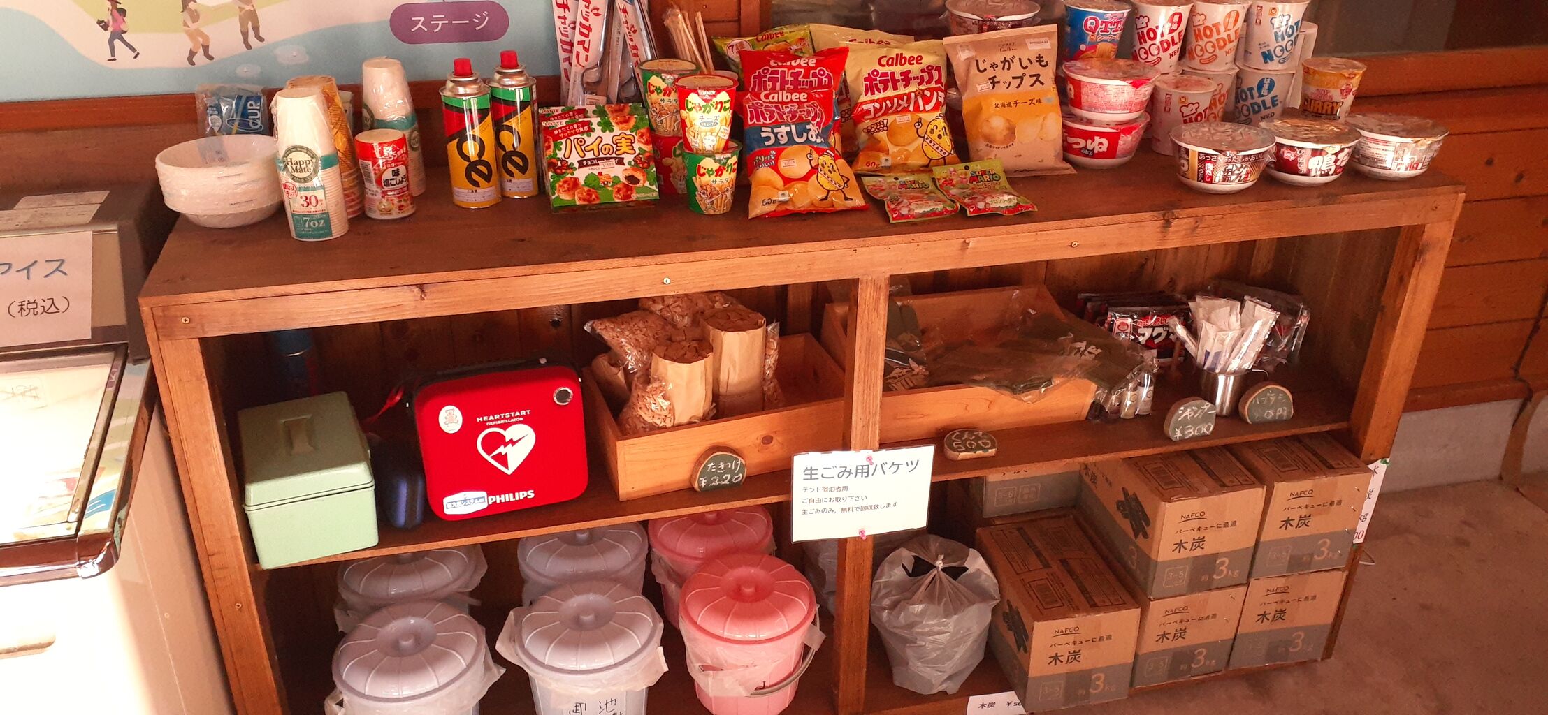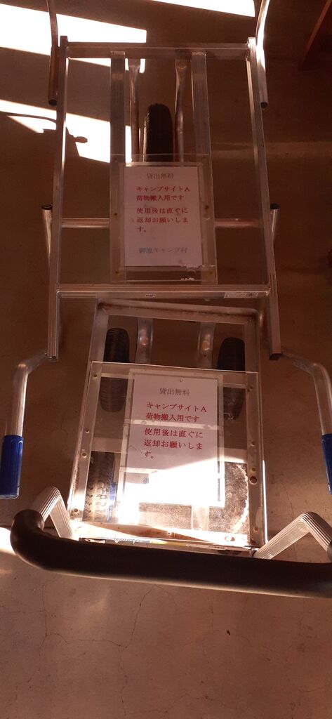 ①タープ(湖畔の広場サイトは陽当たりが良いです)