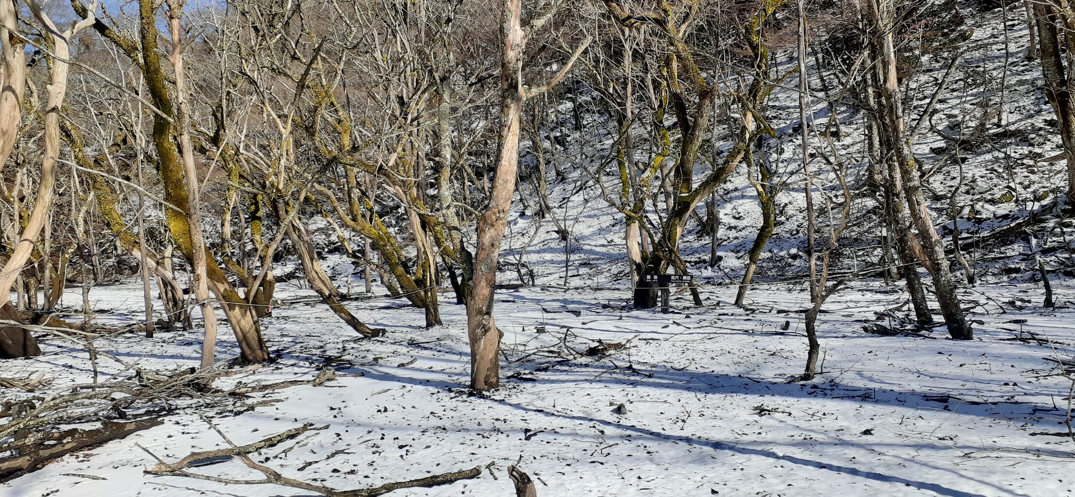 そして深い雪が積もり、視界を遮る低木だらけの道。