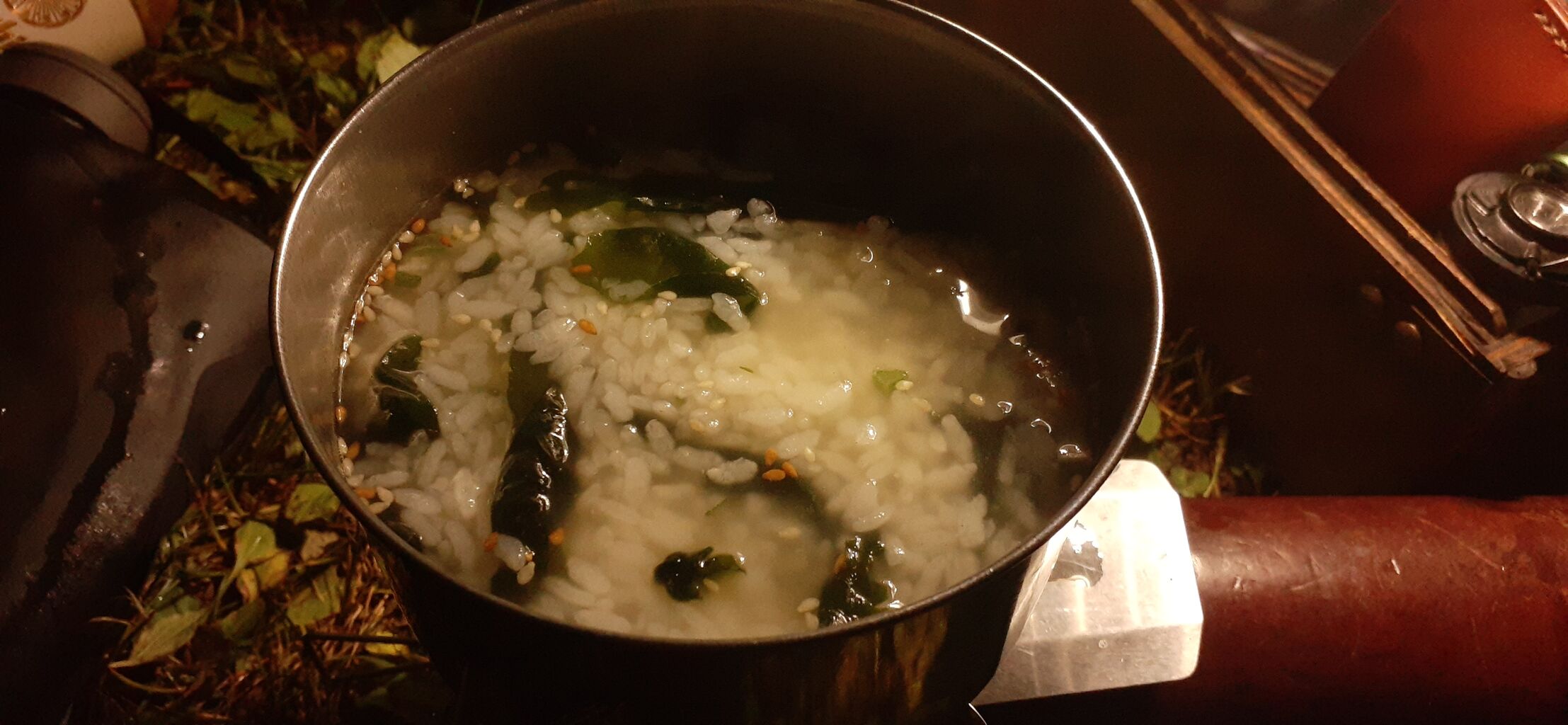 そこにわかめスープの素、ほりにし、お湯を入れて