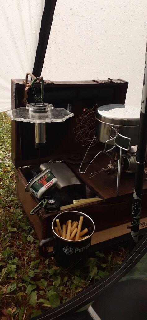 ⑤前室に小石をテーブルの脚にして、カフェトランクとバーナーを