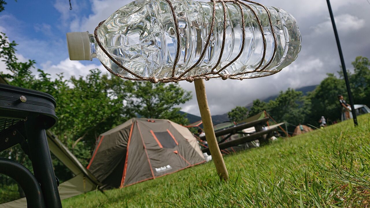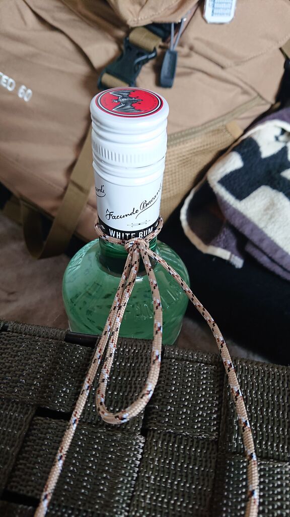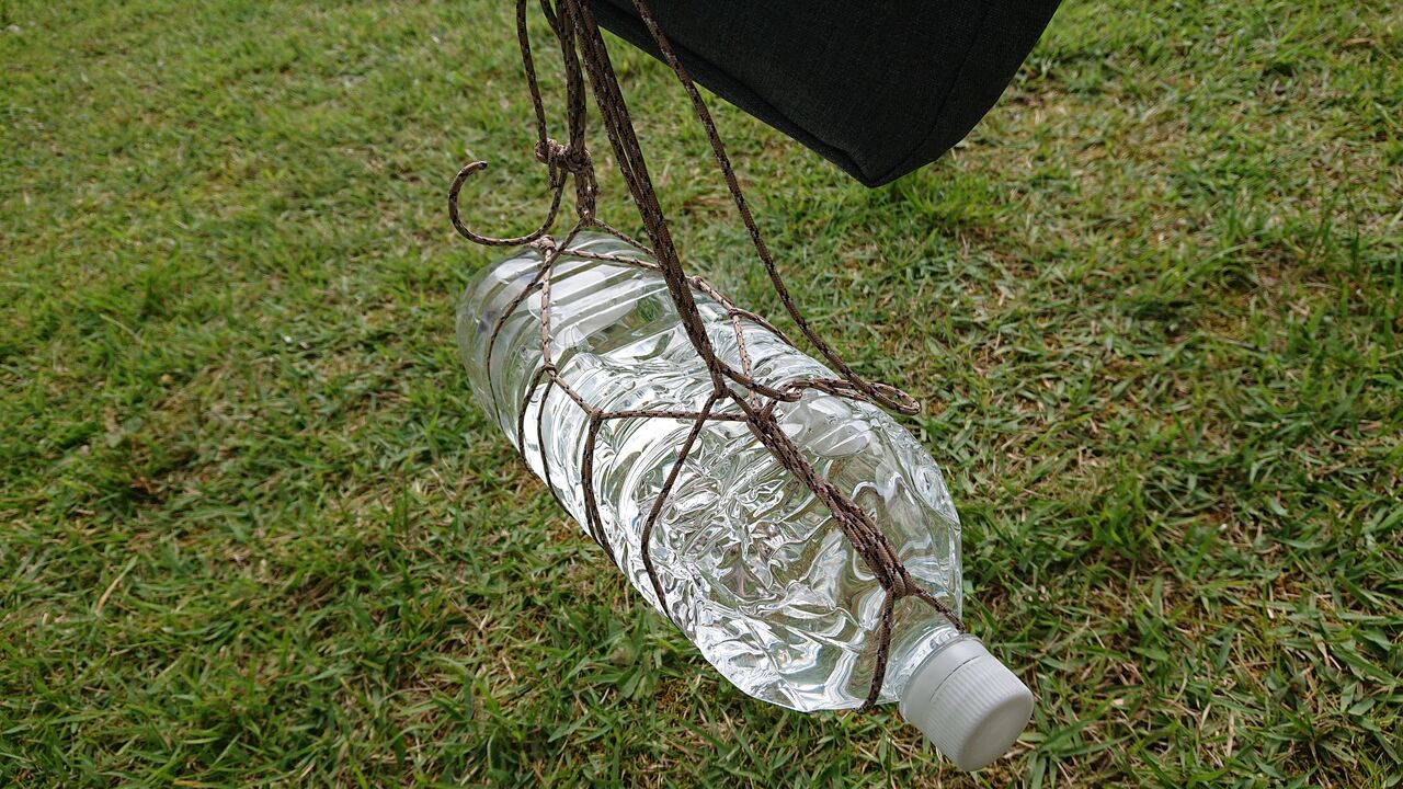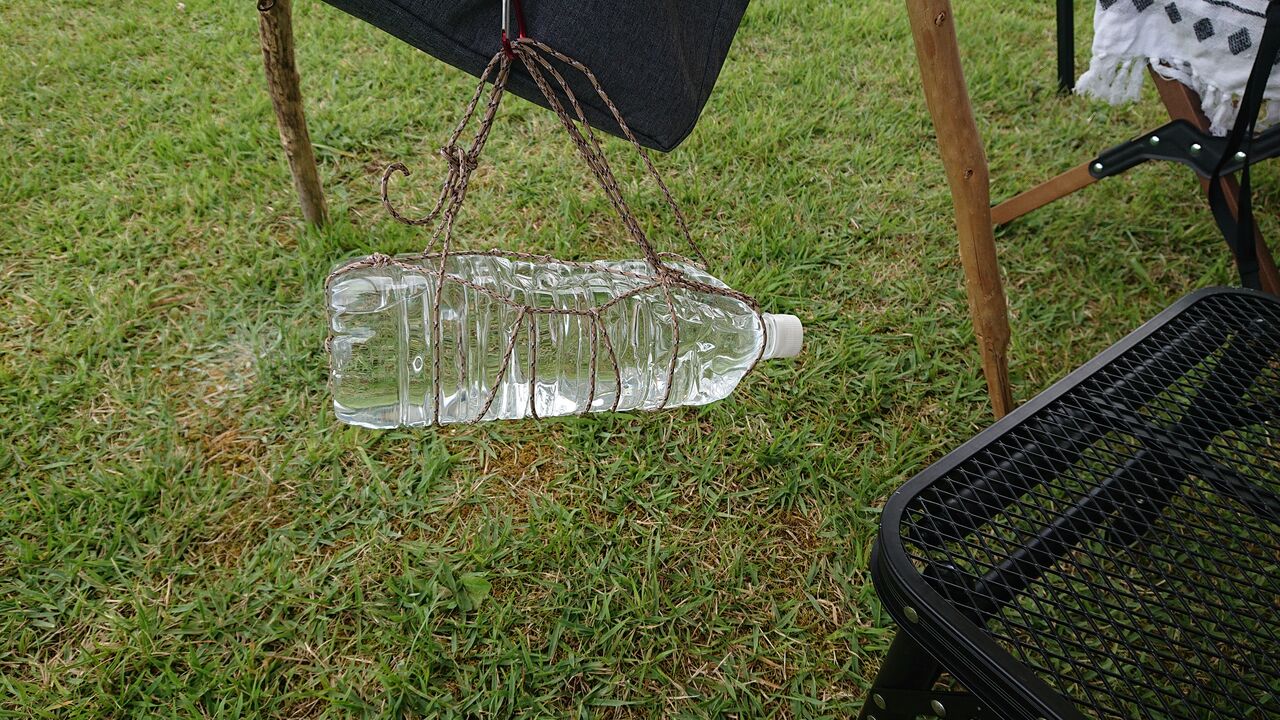 なので、写真のようなボトルをジャグ代わりに吊るすなんて技が可能なのです。