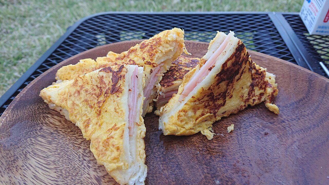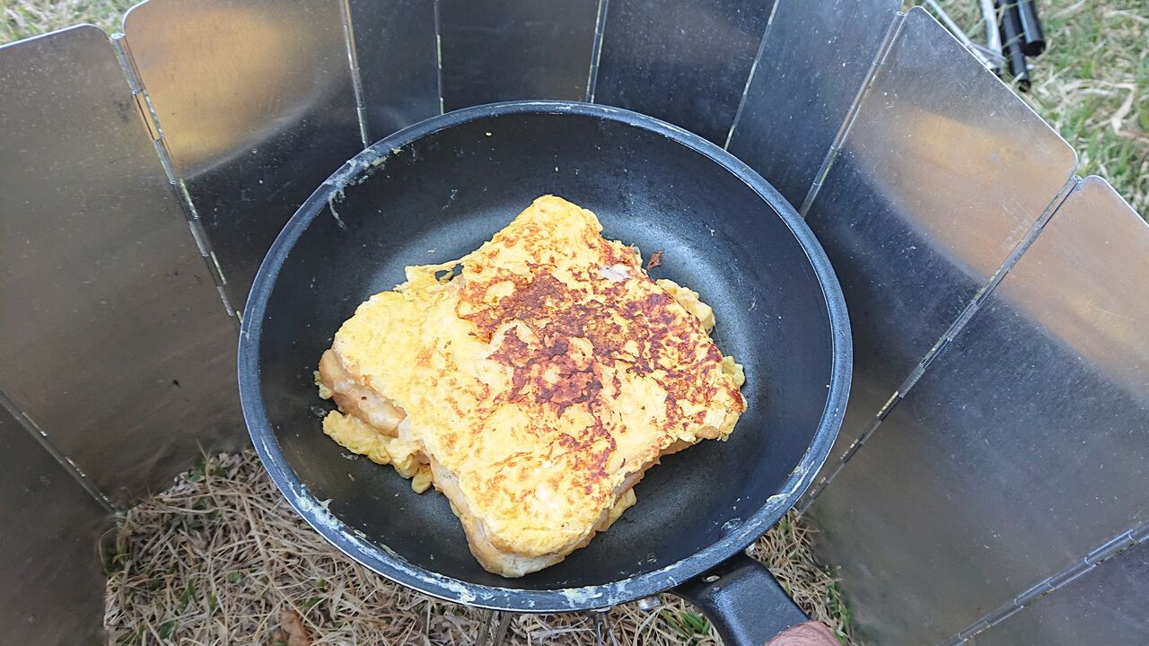 ⑤溶き卵の残り半分をパンにかけて焼く