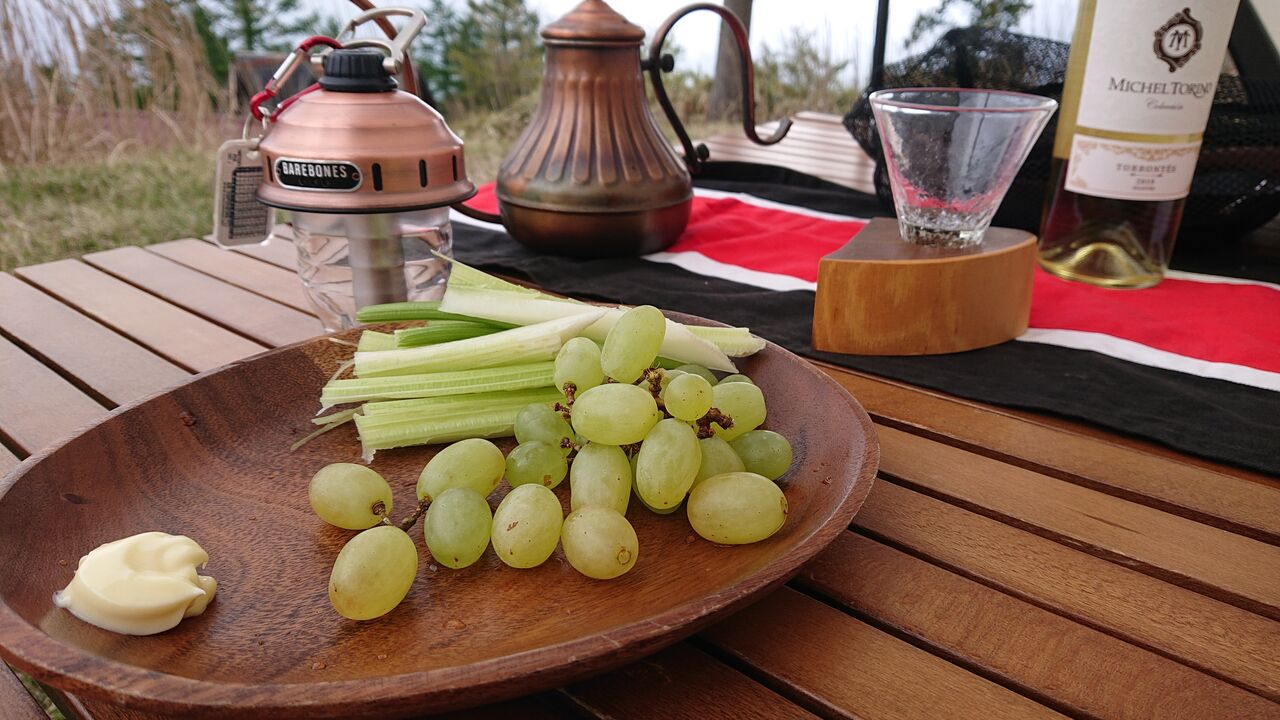 アテに白葡萄とセロリスティック。