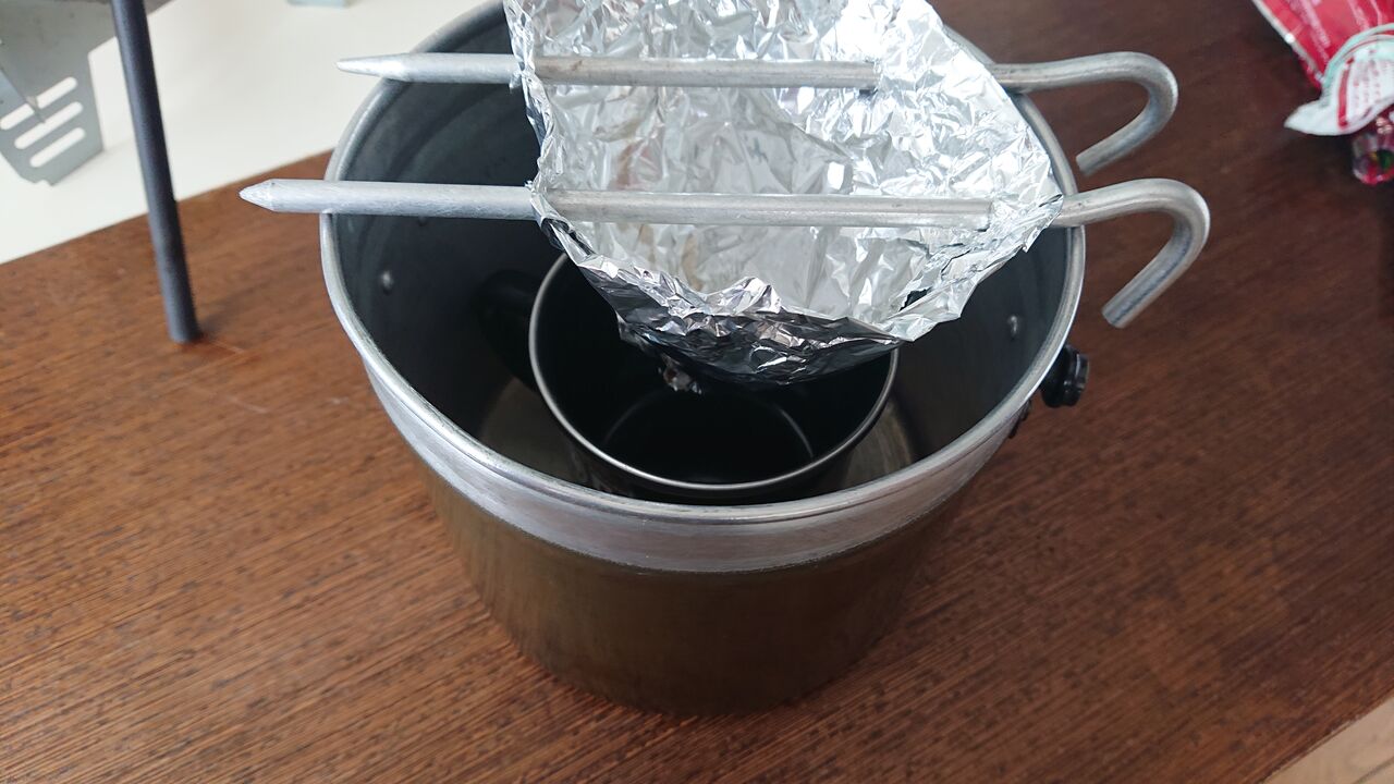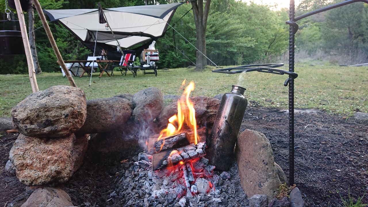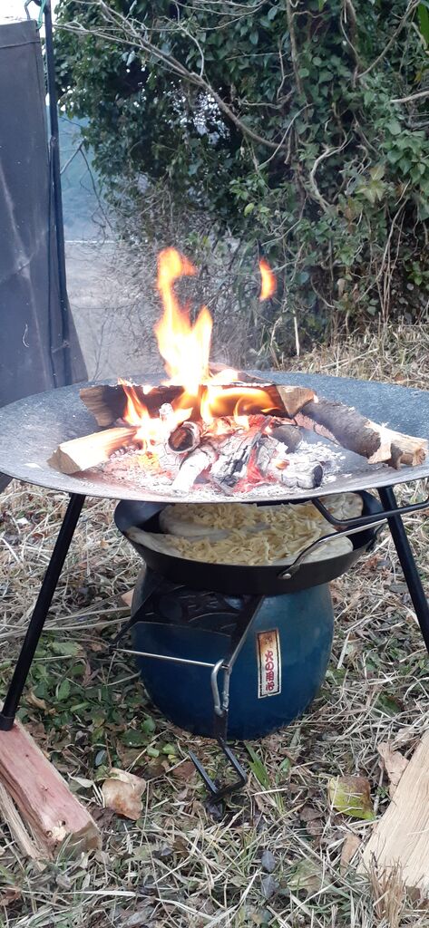 高さもあるので、火鉢を下に置き、シュラフを被せれば、