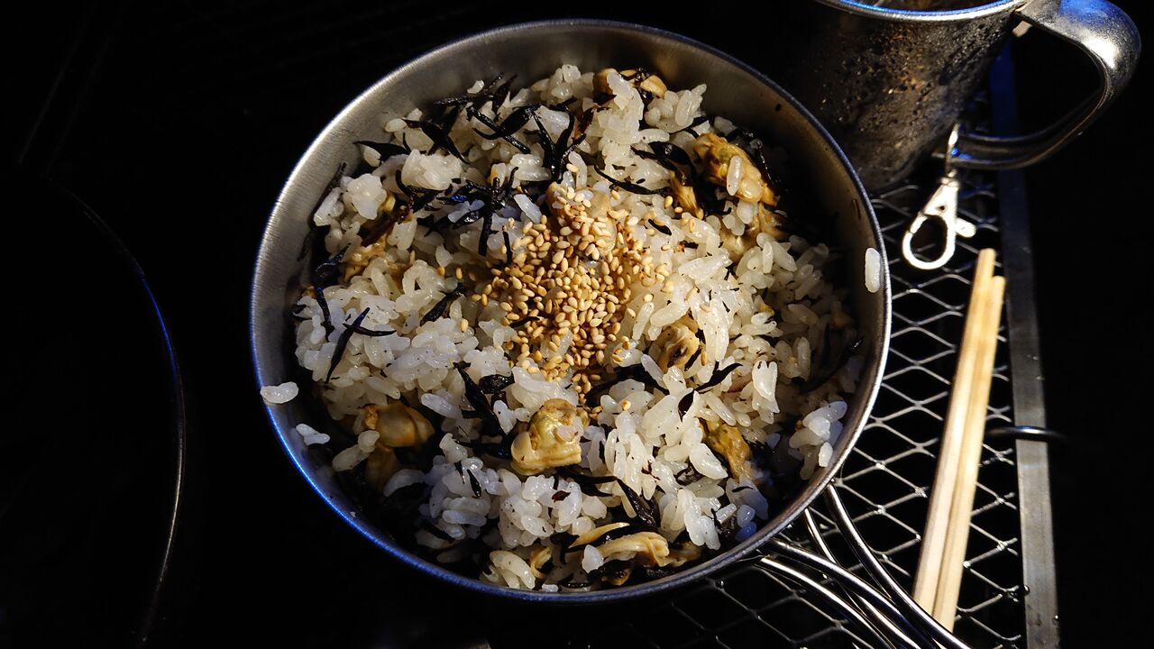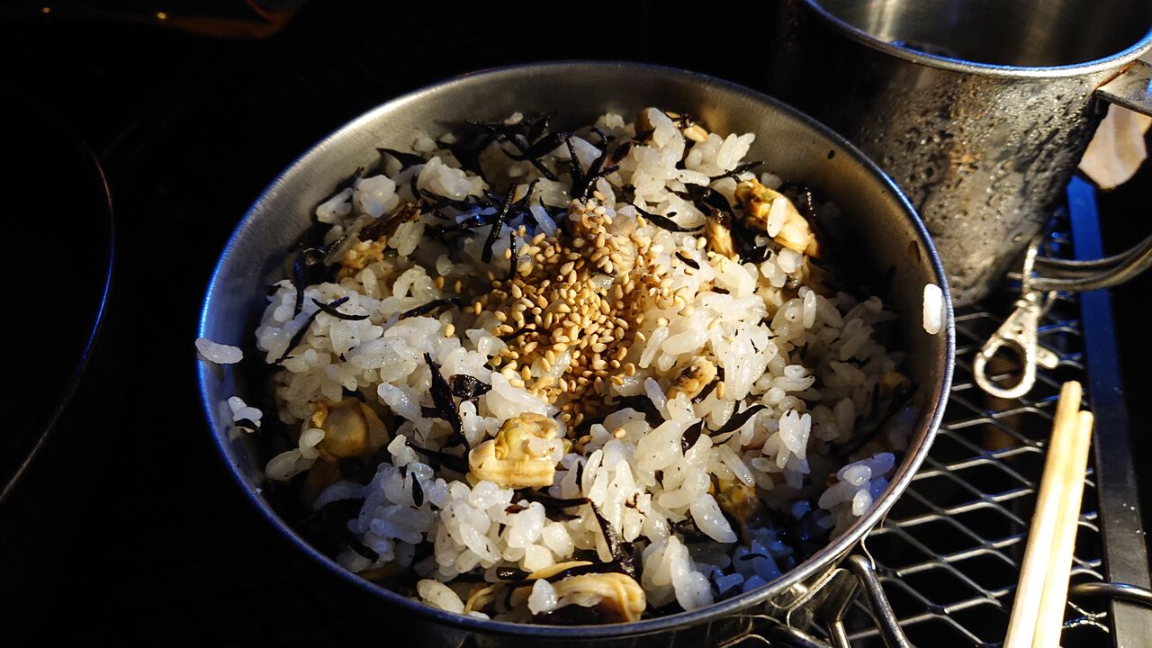 ②玉子、ご飯ですよ、ゴマ投下して混ぜる