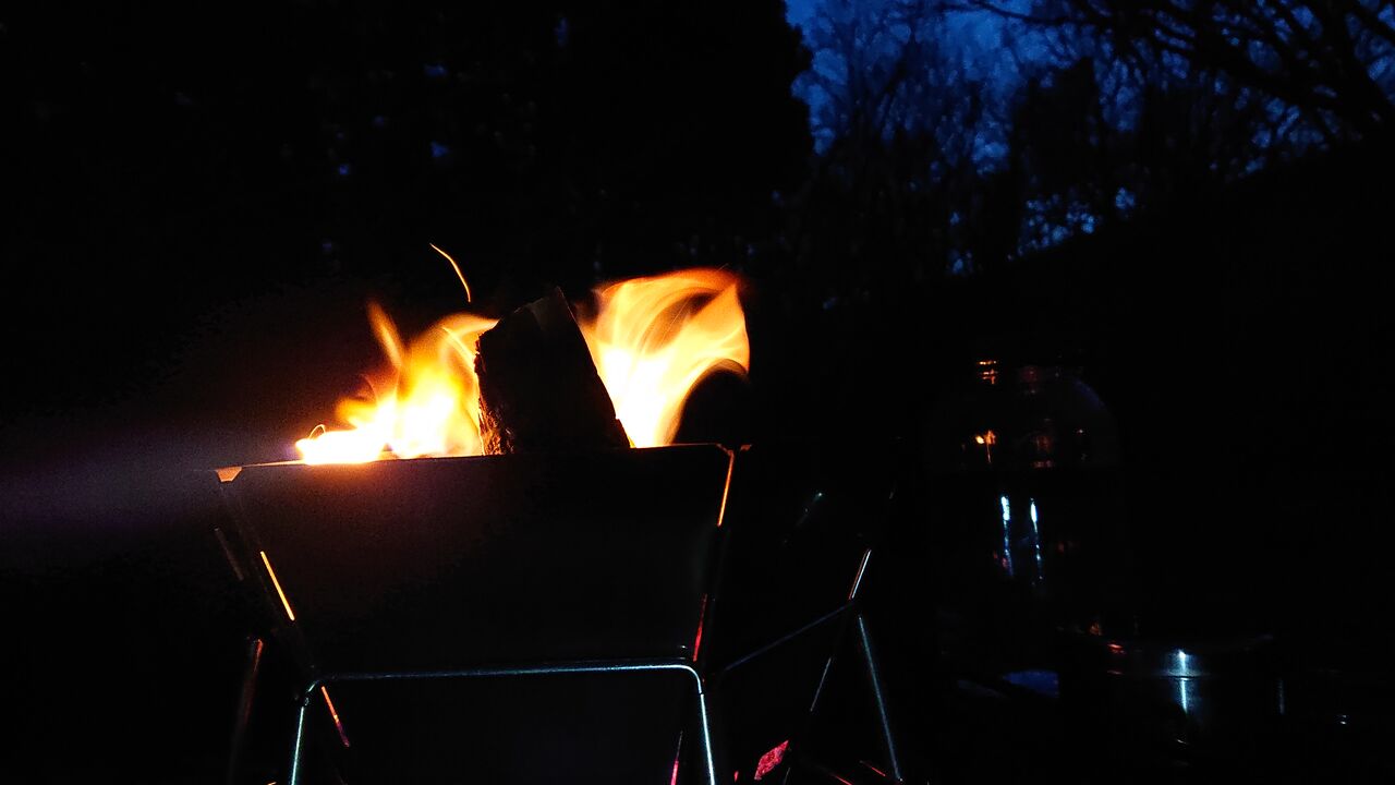 直火が出来るのに、夜は焚き火台使った。
