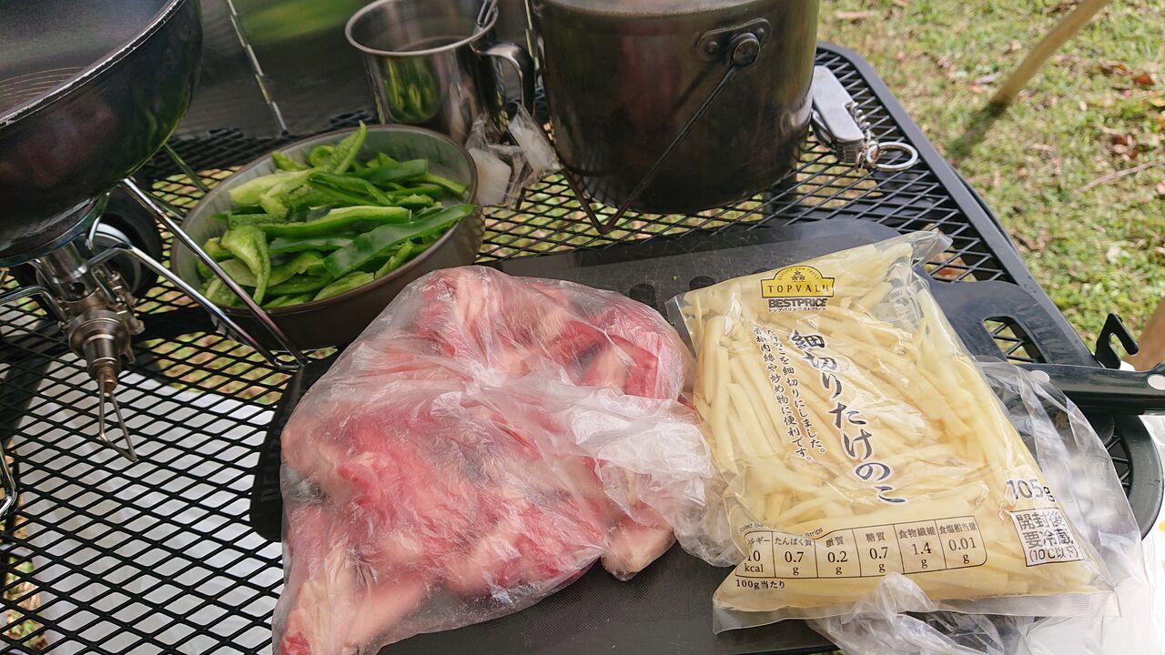 焼き肉用牛肉、ピーマン、細切りタケノ