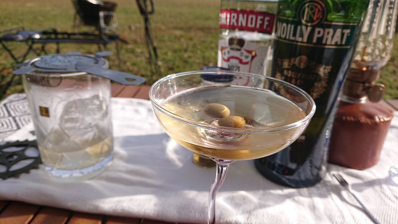 まさかキャンプ場でマティーニ飲むことになろうとは。