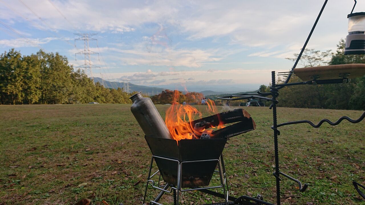 芝に熱は伝わらないし、高さが丁度良く、実に焚き火が快適に楽しめる。