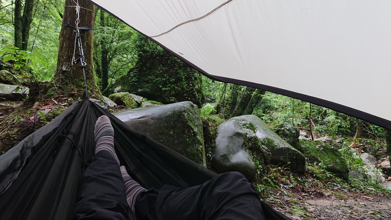 ハンモック&タープ泊なら、濡れるギアは2つだけ。