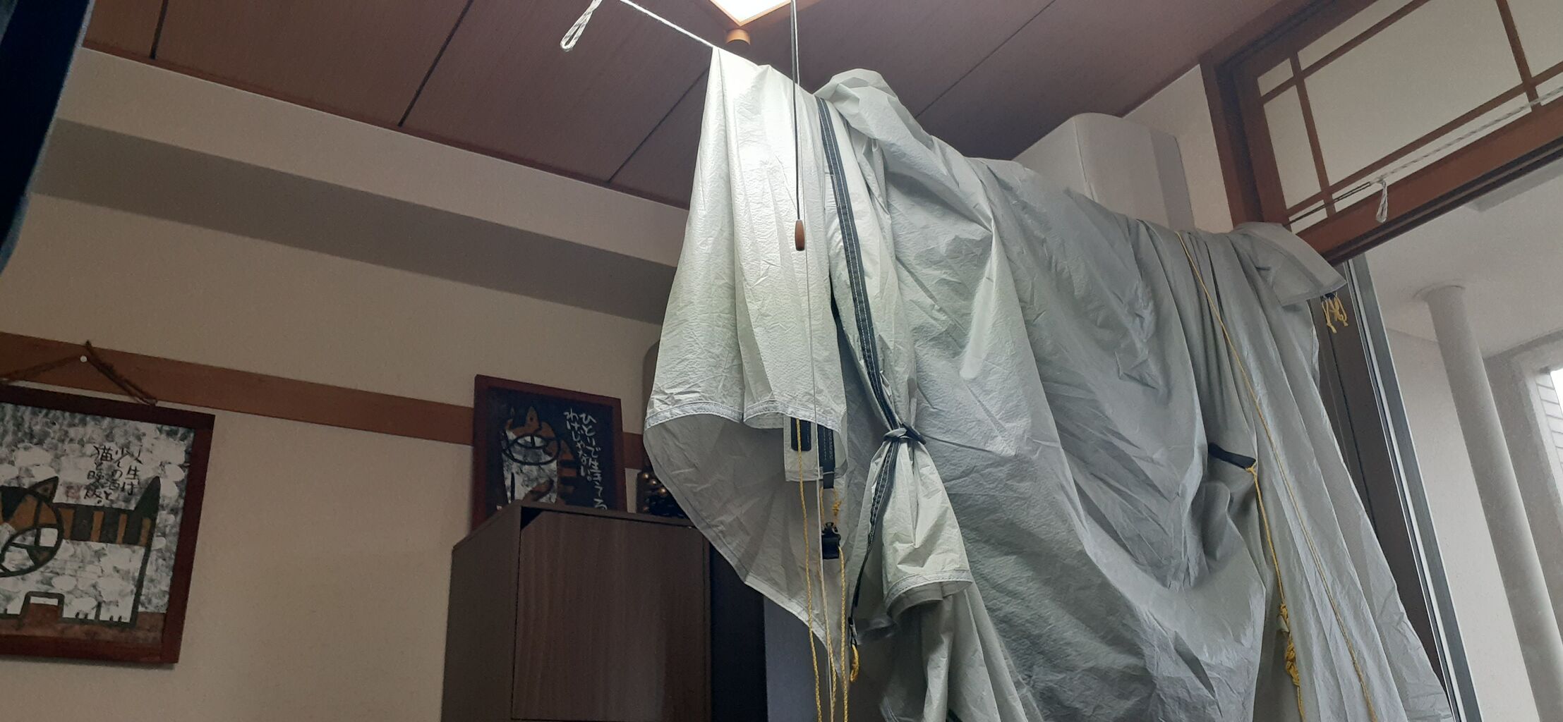 梁などにロープを渡して、物干し場を仮設すると良いです。