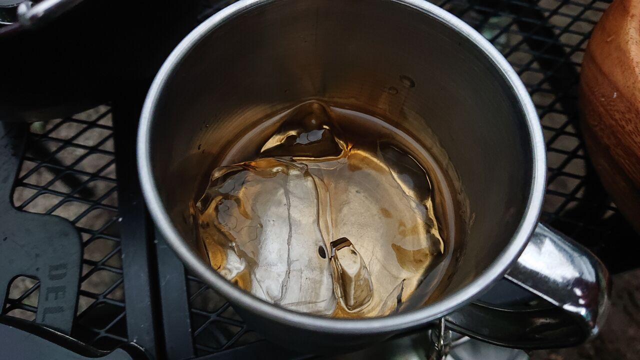 外は晴れてるのに、タープ下は水滴の雨が降る。