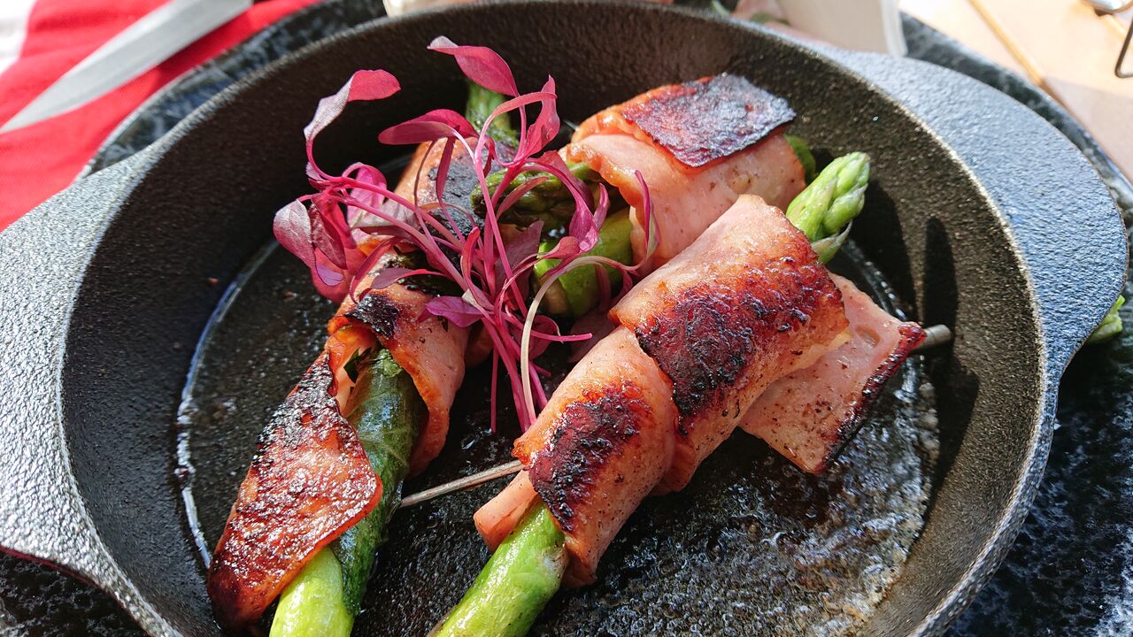 単なるアスパラ巻きが、外メシ効果とシャウベーコンで、劇的にウ