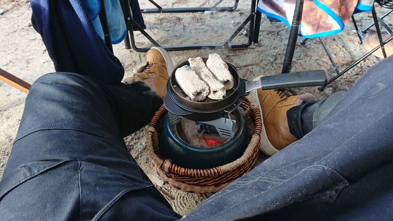 使用ギア:蓋付きスキレット、アルミホイル、炭火