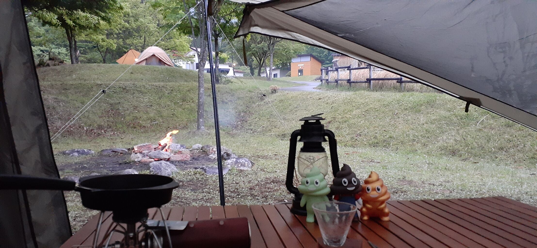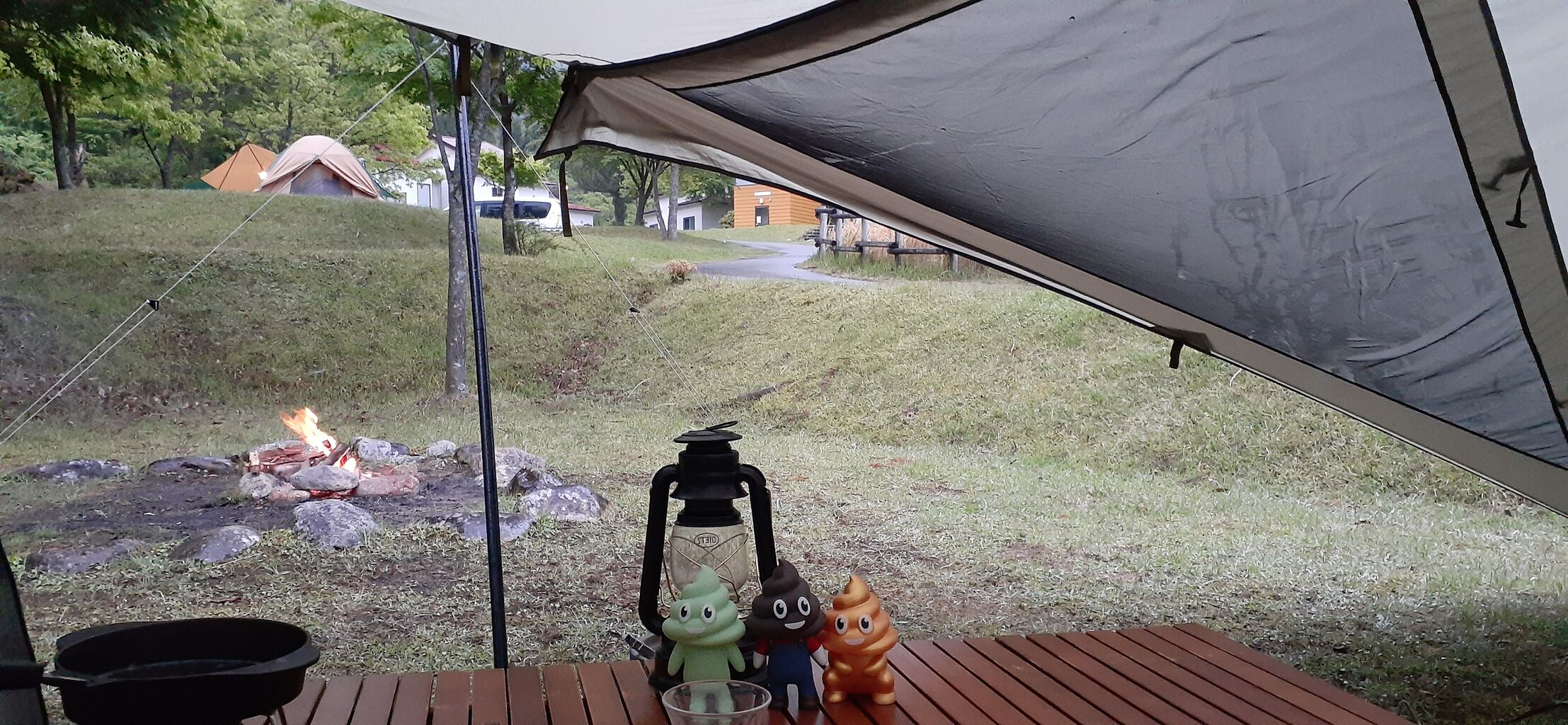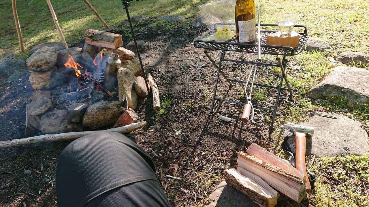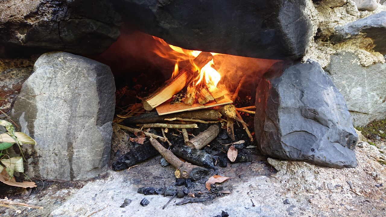 雨が止んだ隙に焚き火開始。