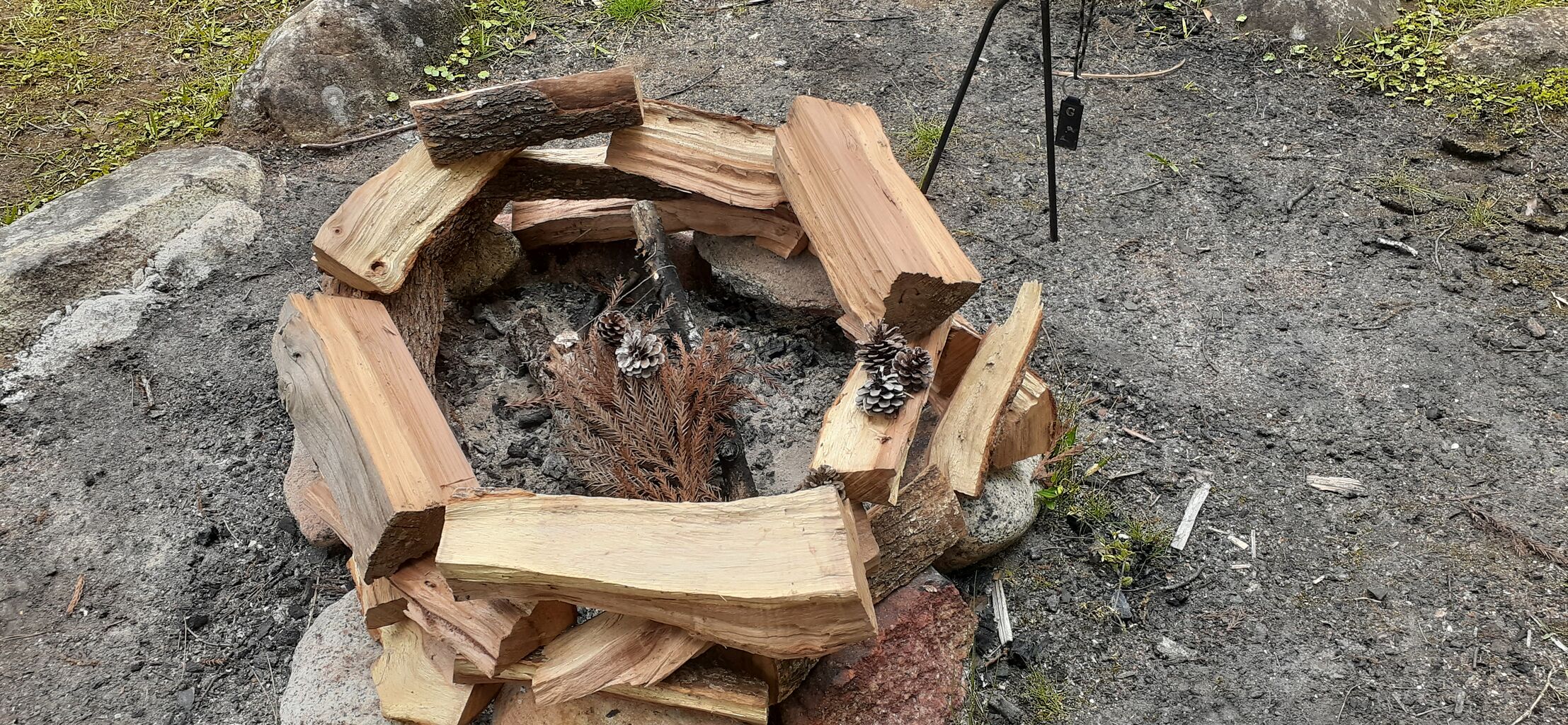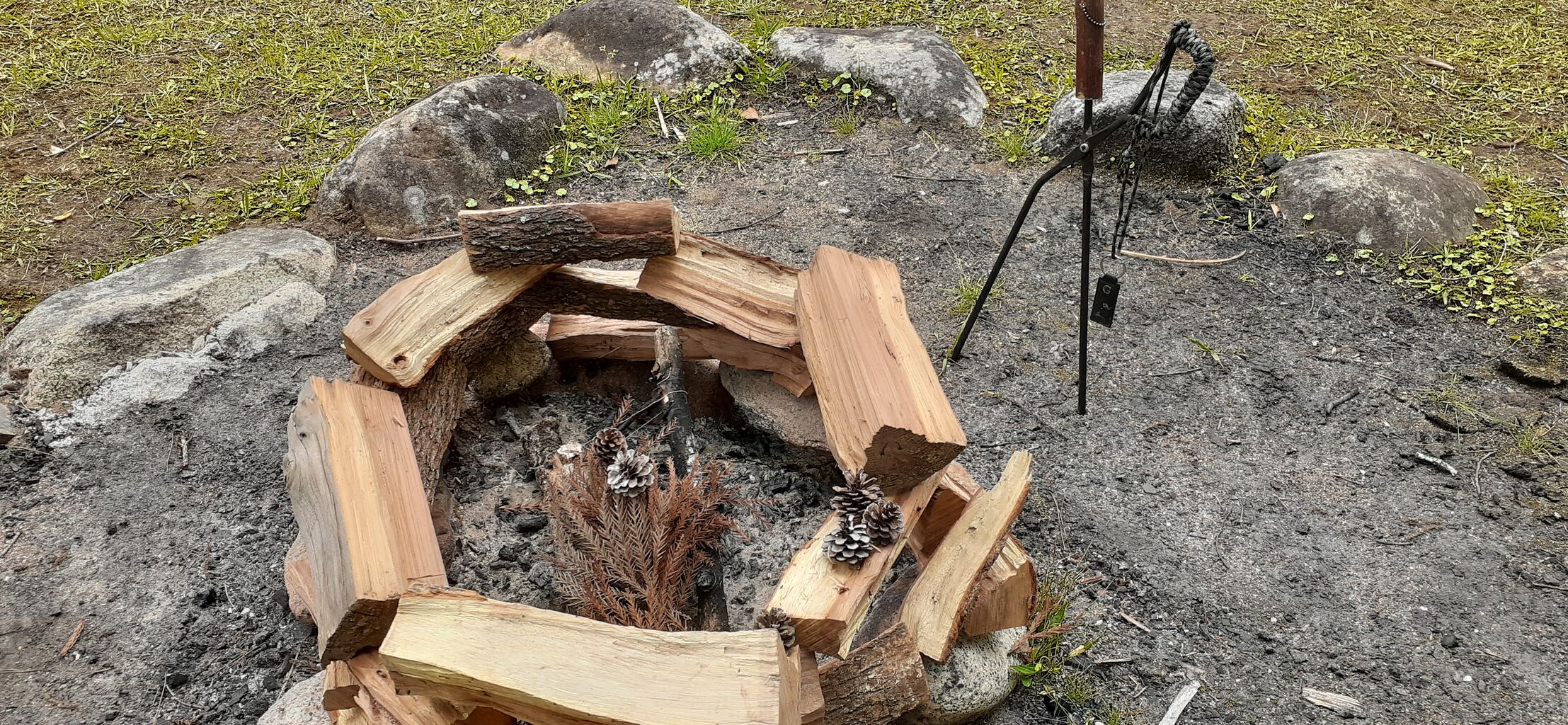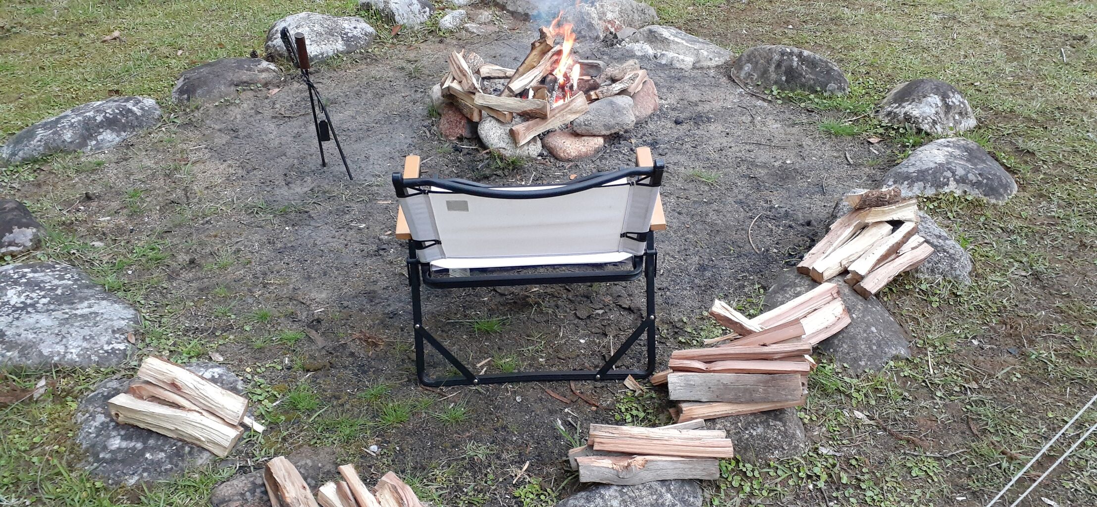 雨が止んだ隙に焚き火開始。