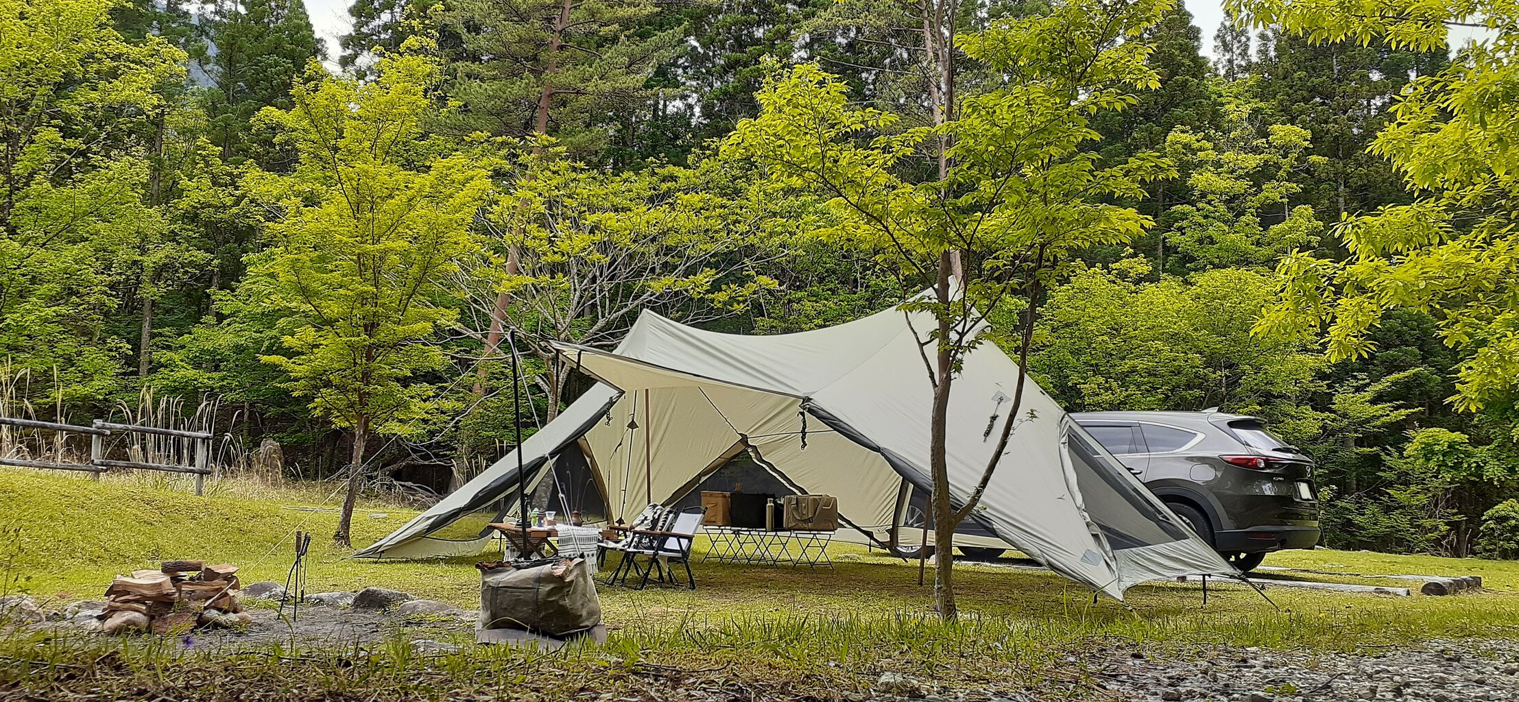 「景観抜群!直火可能!九州最強級オートサイトに無駄しかない大型幕ハイドアウトでソロを愉しむ!鹿川キャンプ場(2回目) ★前編」