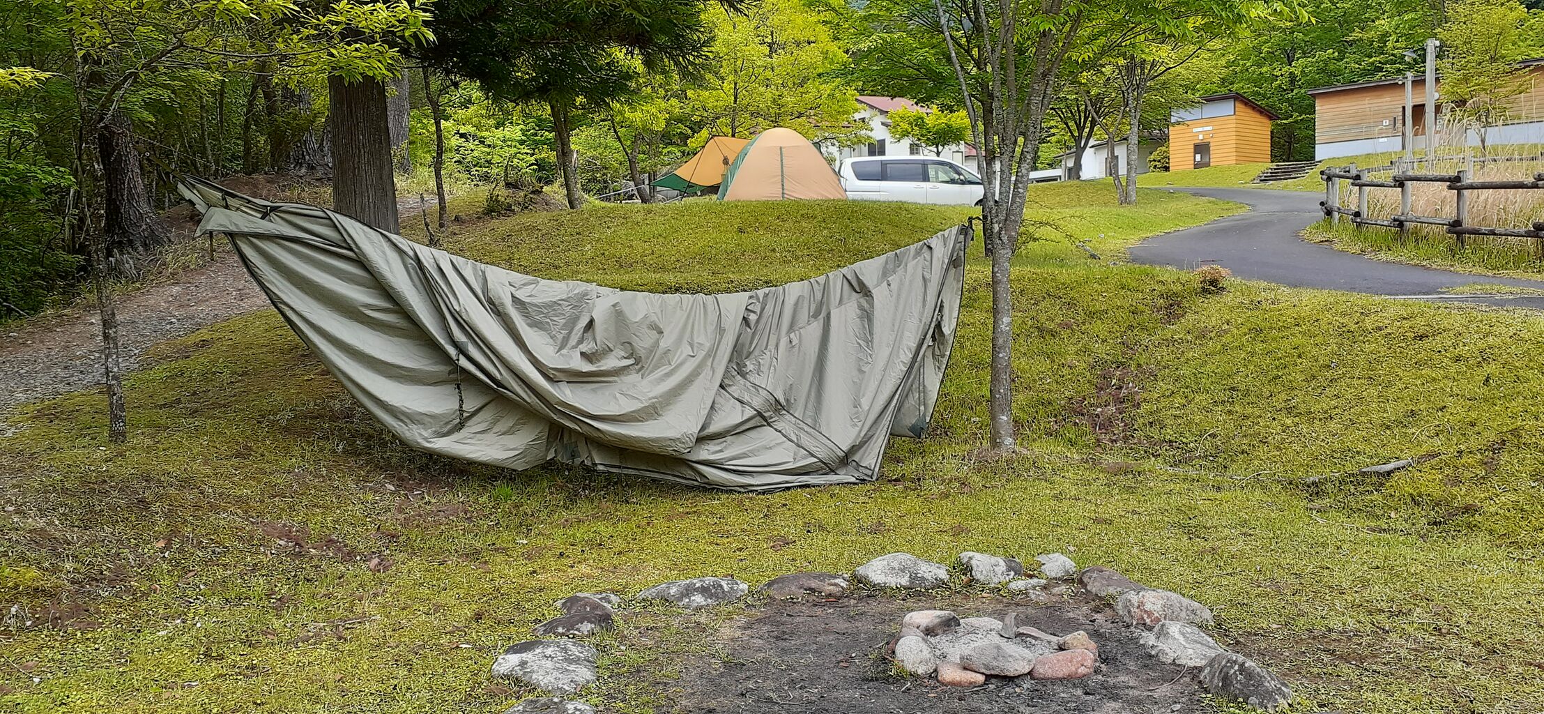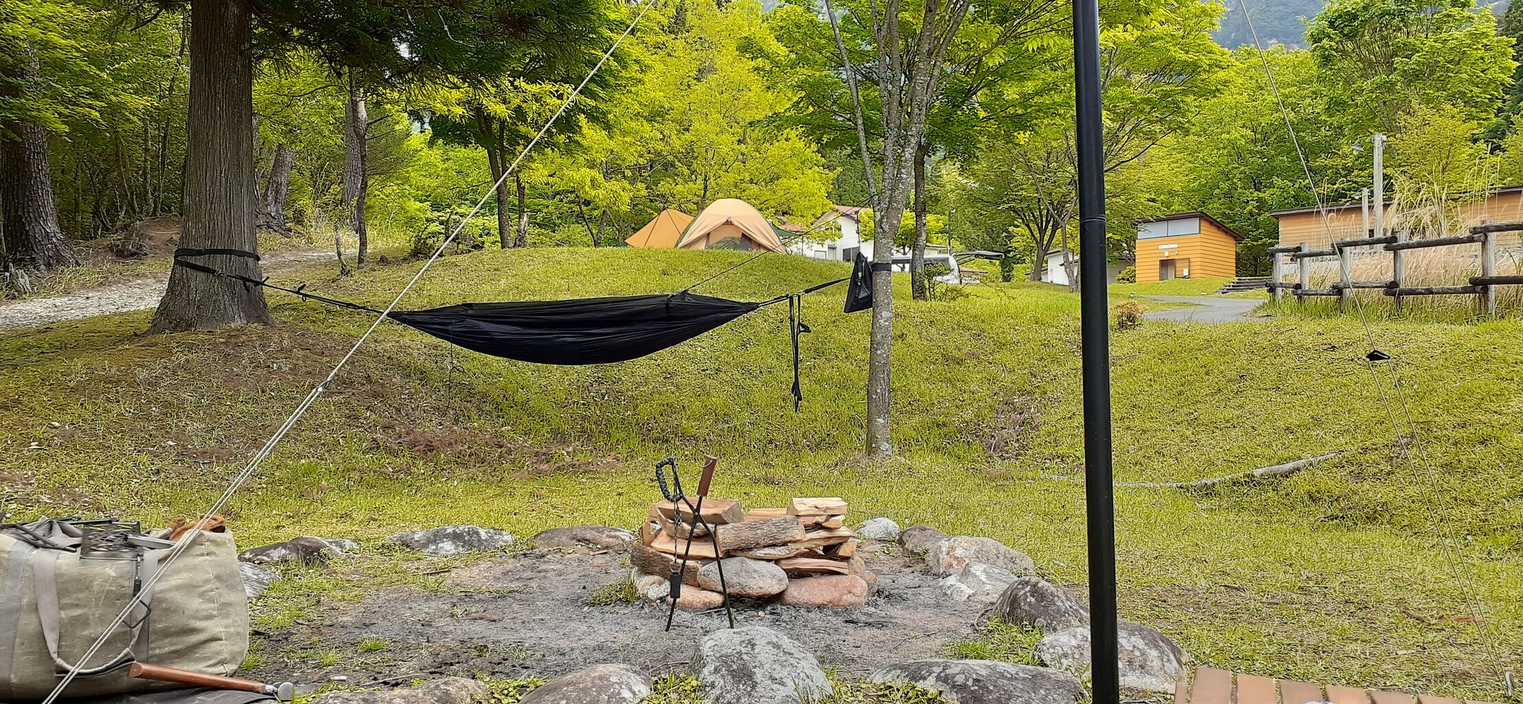 ハンモックで寝るのは諦めよう・・。