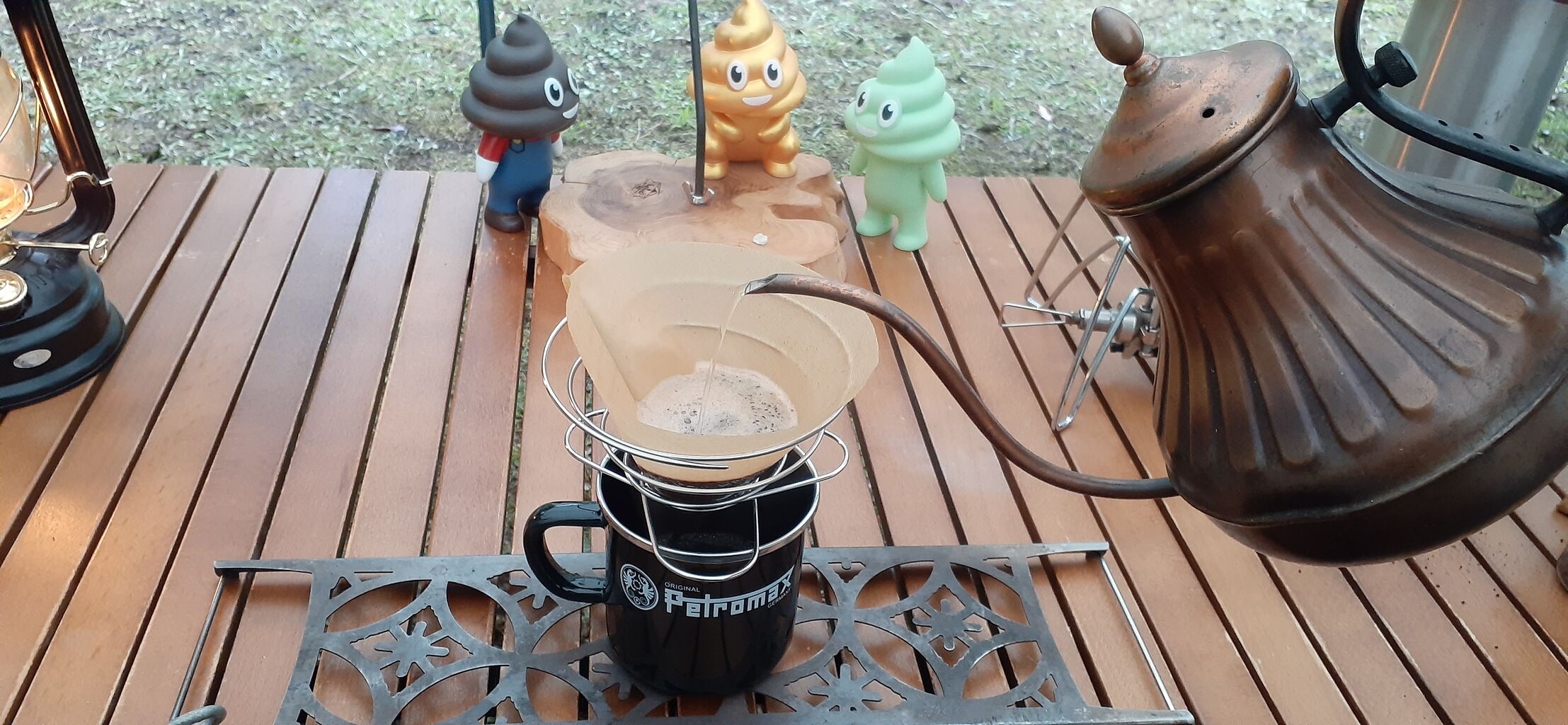 ゆっくり立ち上る香りを楽しみながら、じっくり抽出して、ペトロマックスマグ一杯になったら終了。