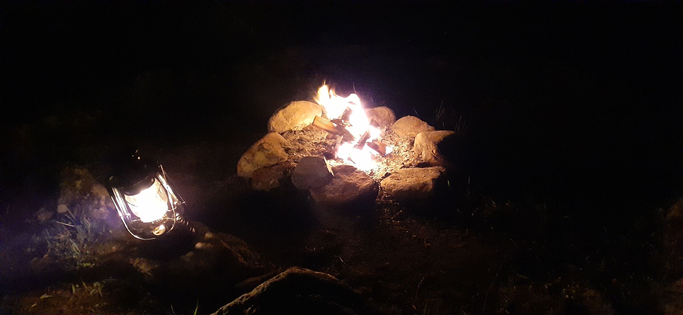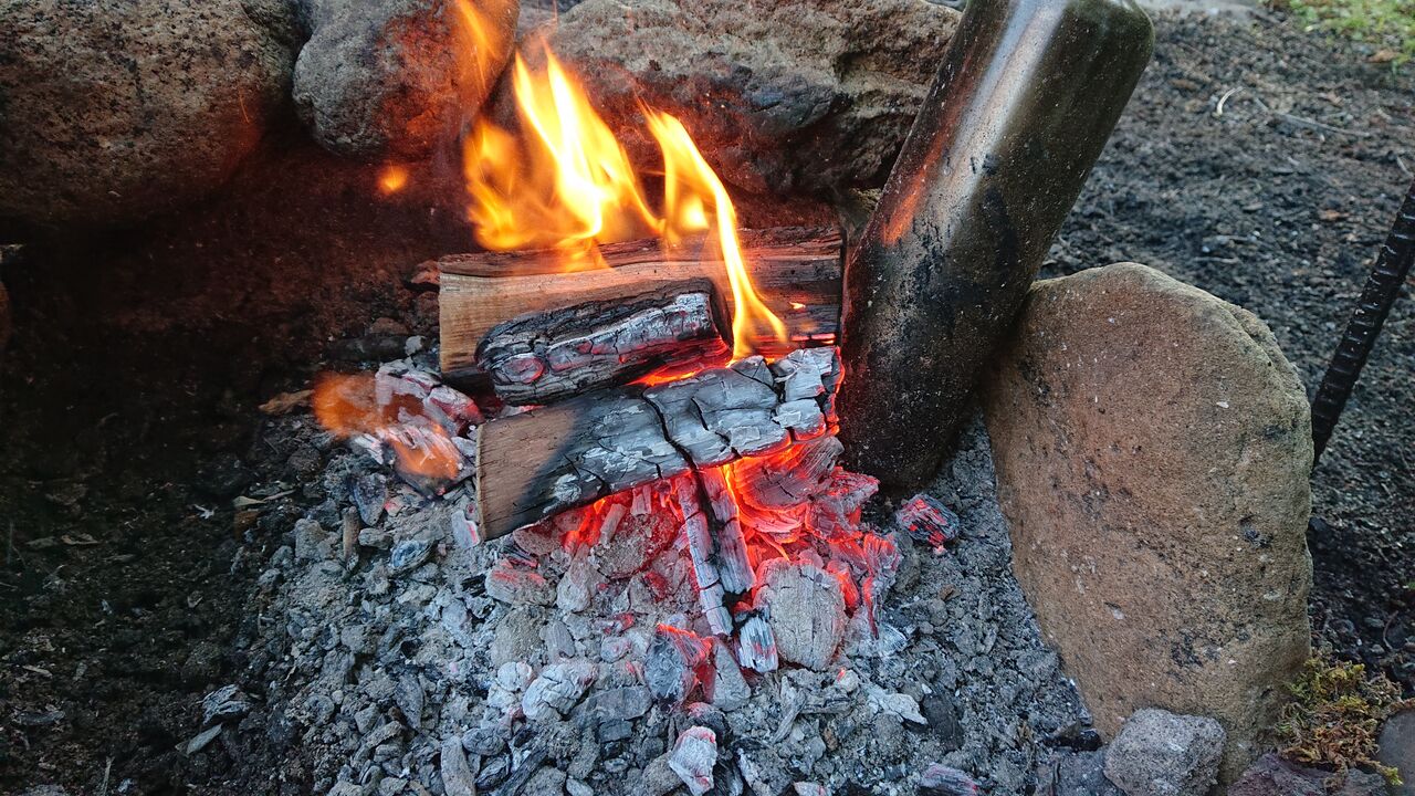 遠目に揺れる直火の炎。
