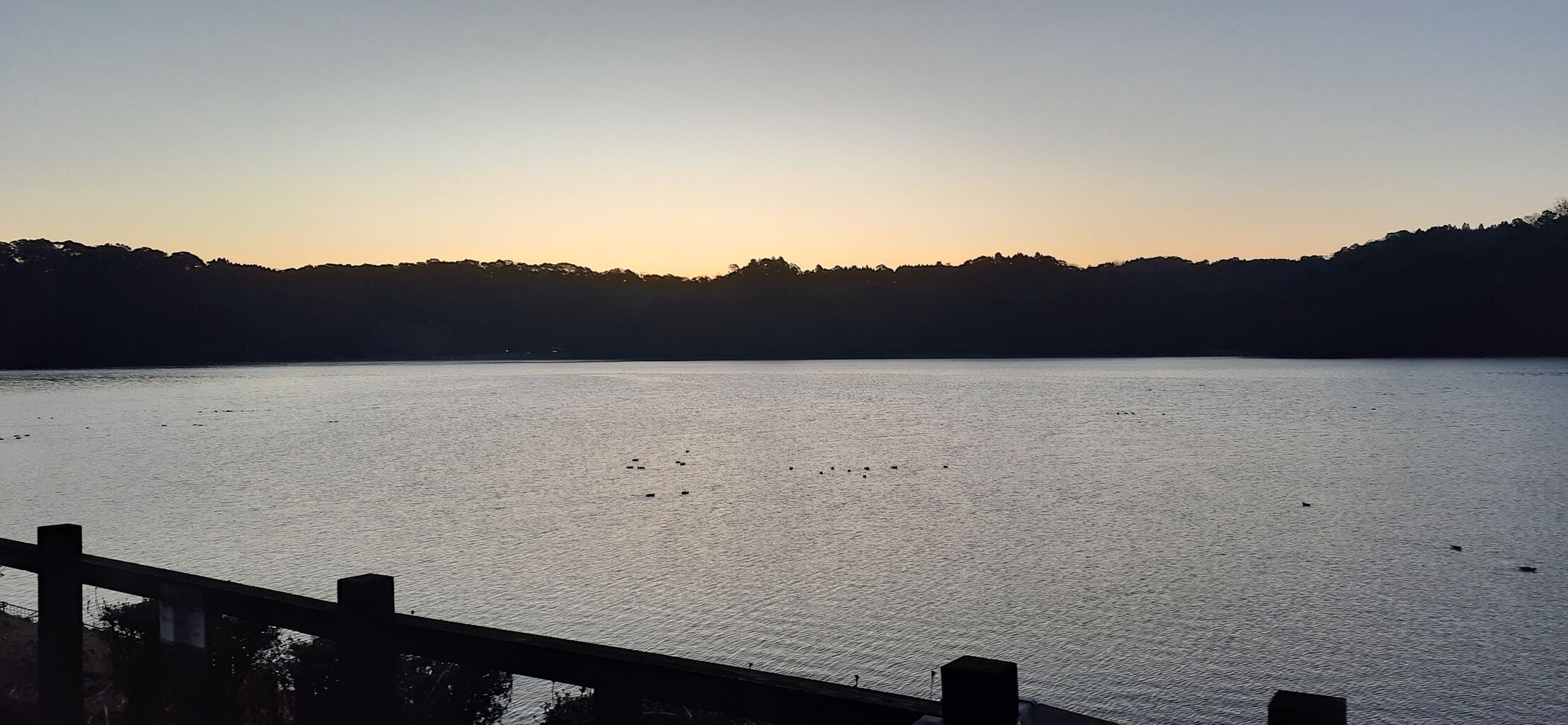 スコッチをストレートで呑みながら、りんどうの丘の岩棚から景色を眺める。