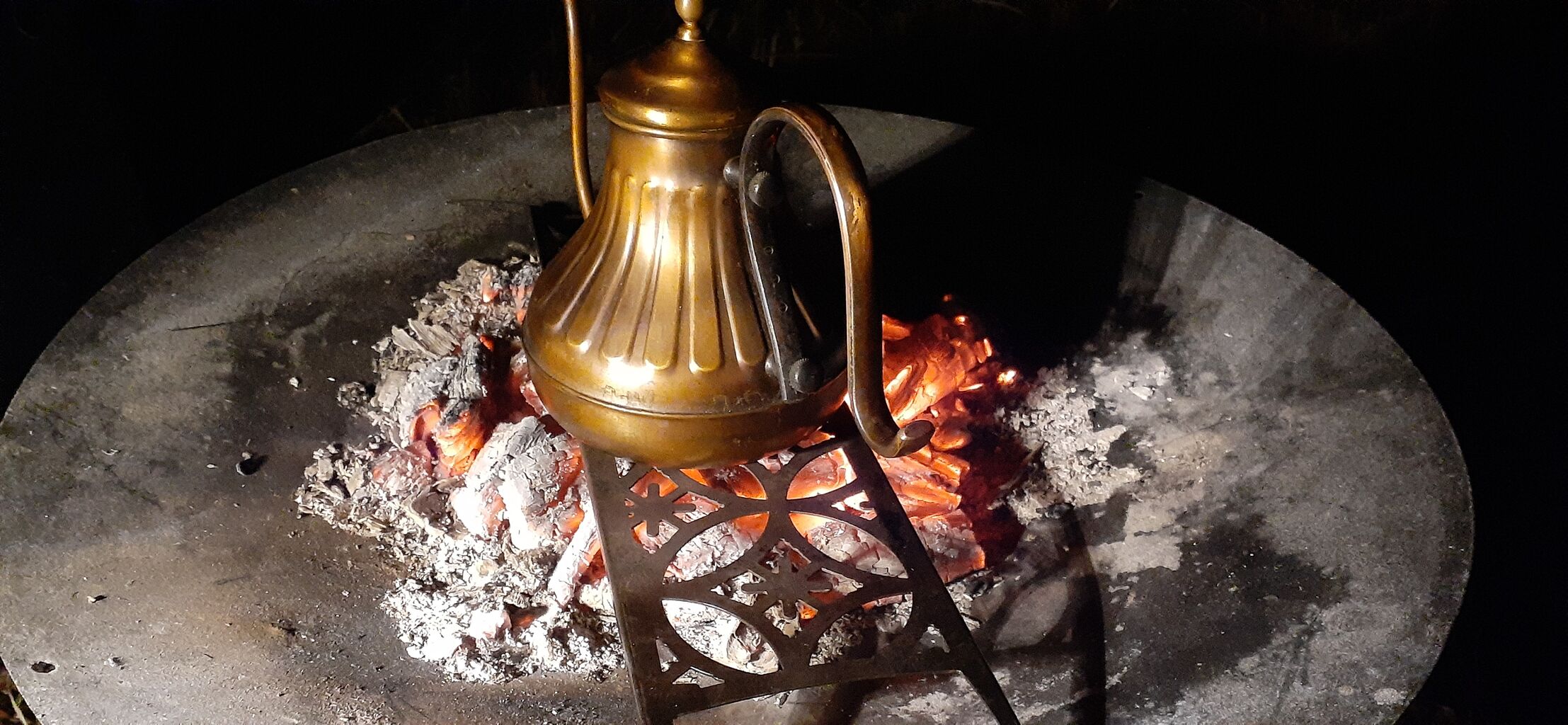 熾火なら煤で黒くならないので、お高いこのコッパーケトルでも直接かけられる。