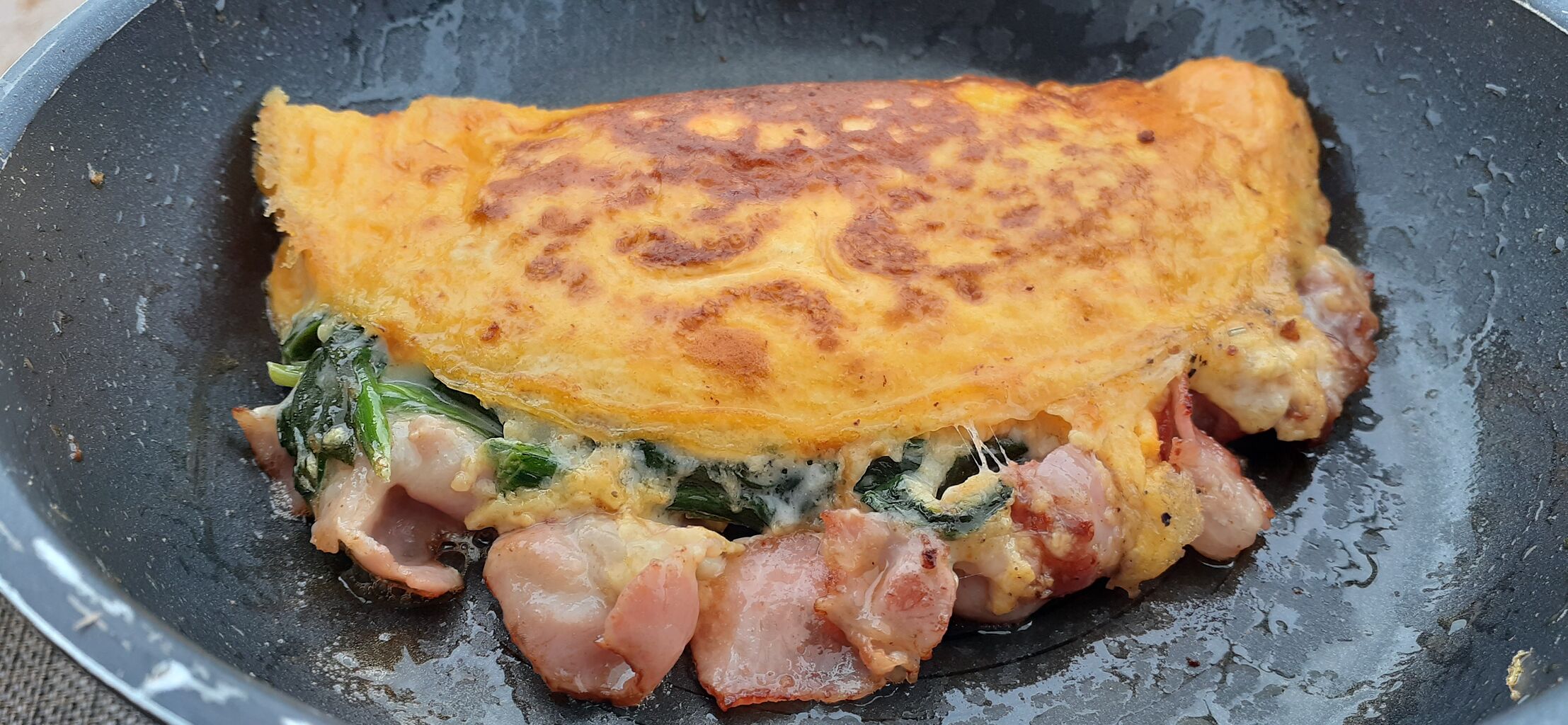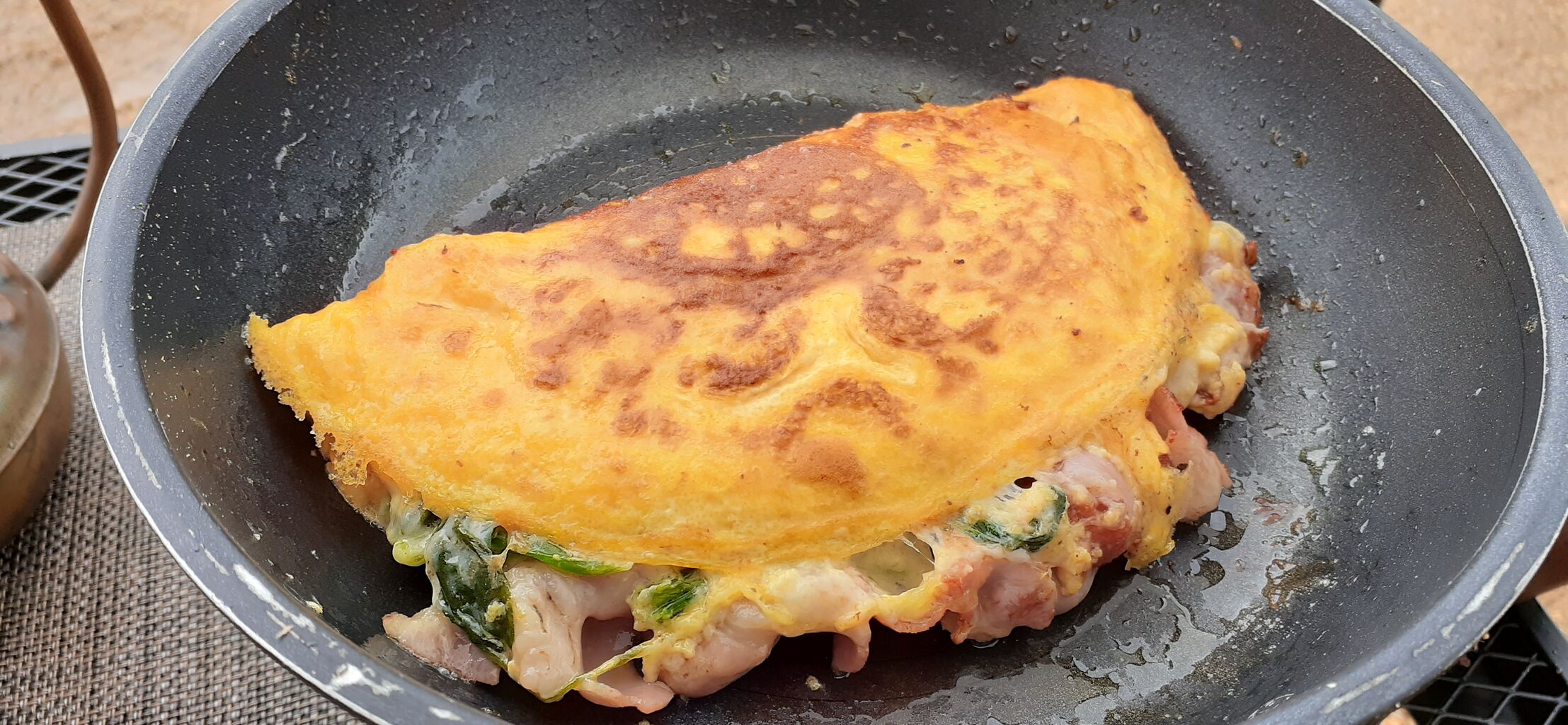 ⑤チーズ、ベーコン、ほうれん草を片側に寄せて乗せる