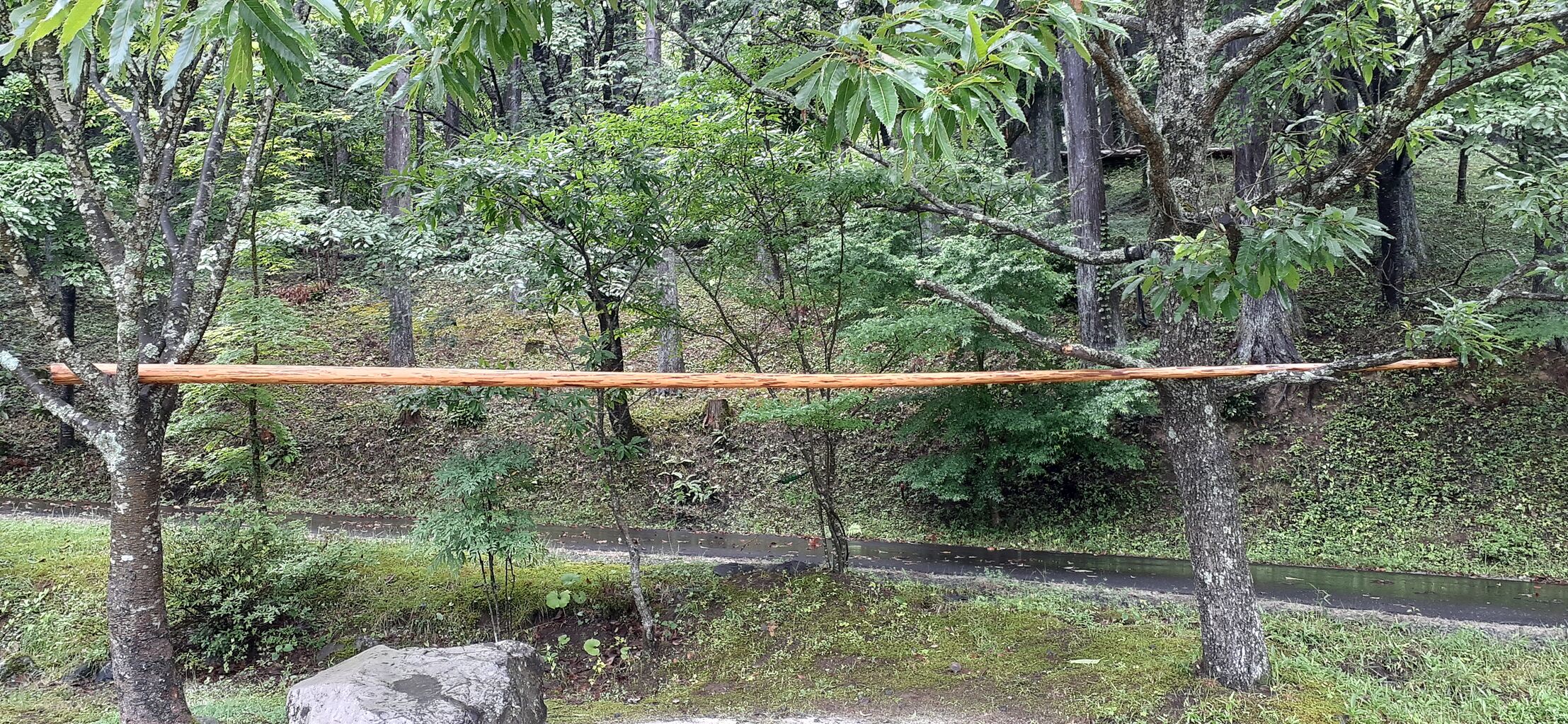 受付の奥を抜けると森の中。
