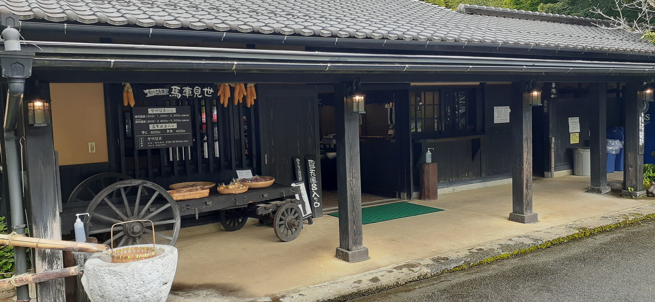 民芸調の趣ある建物が受付です。売店もあります。