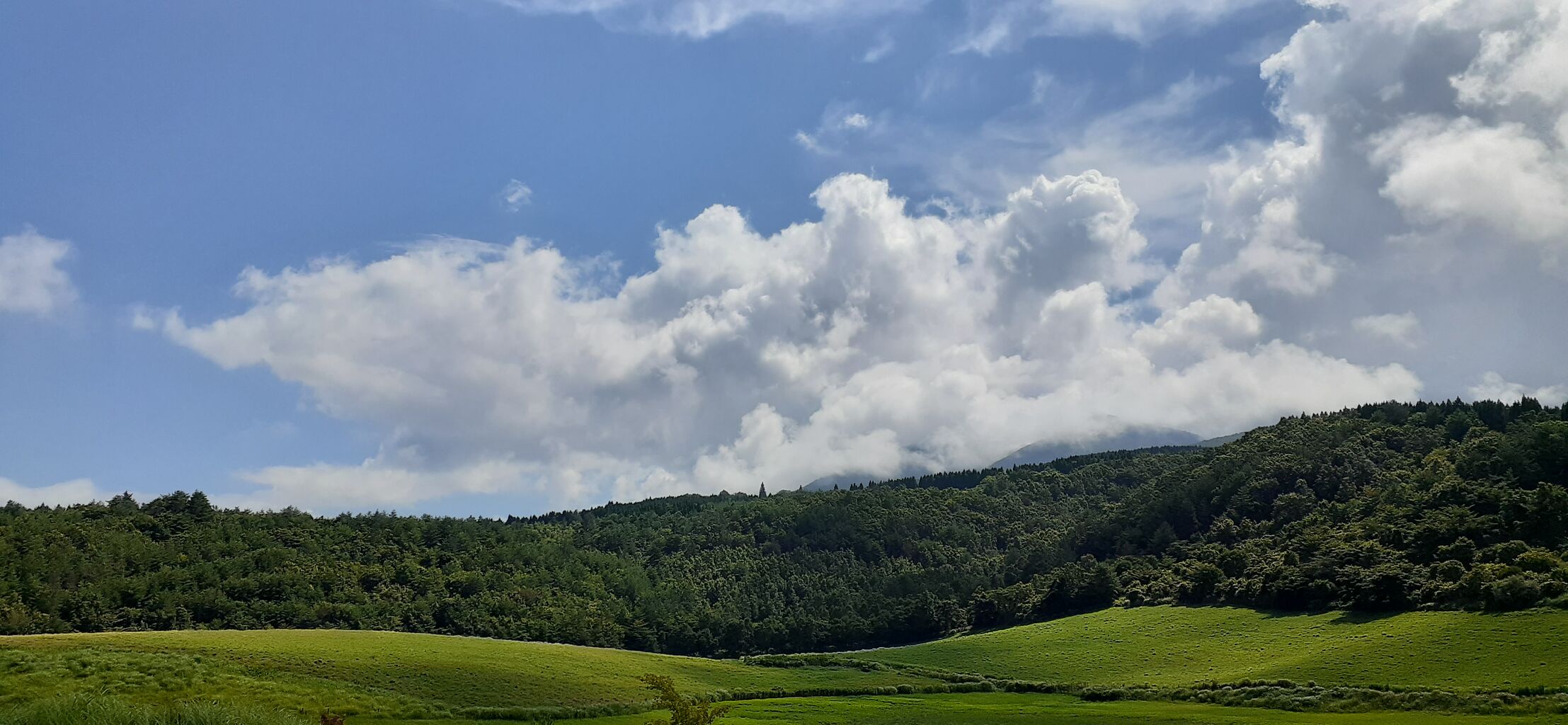 やや雲が多くて、阿蘇五岳は見えにくい。