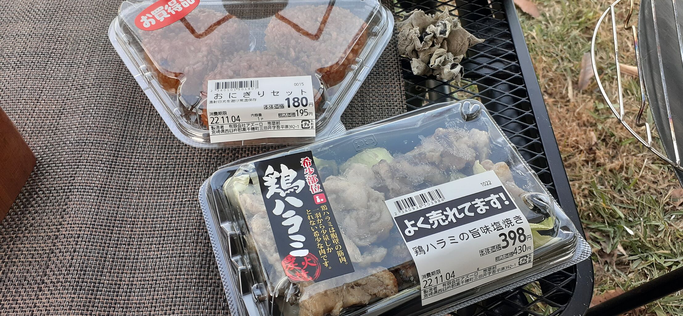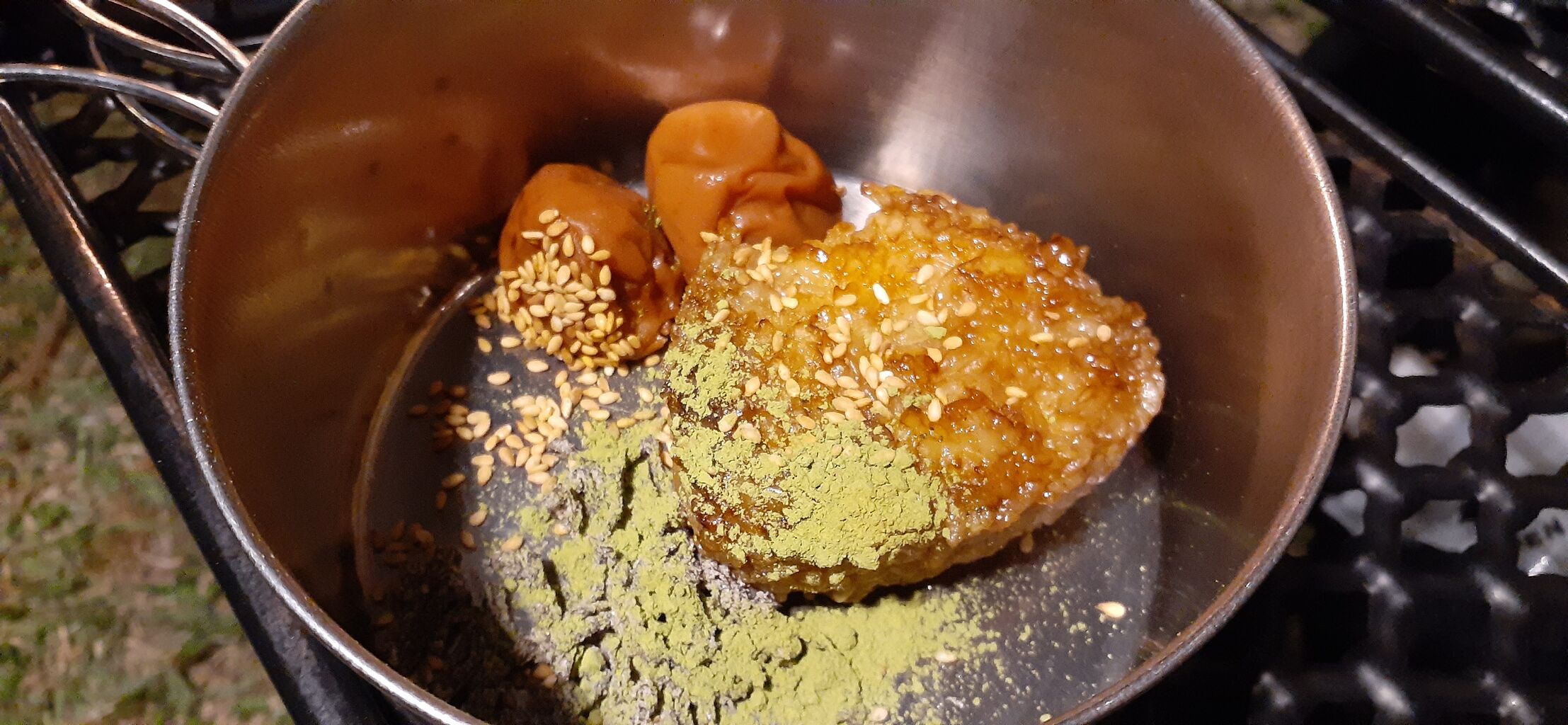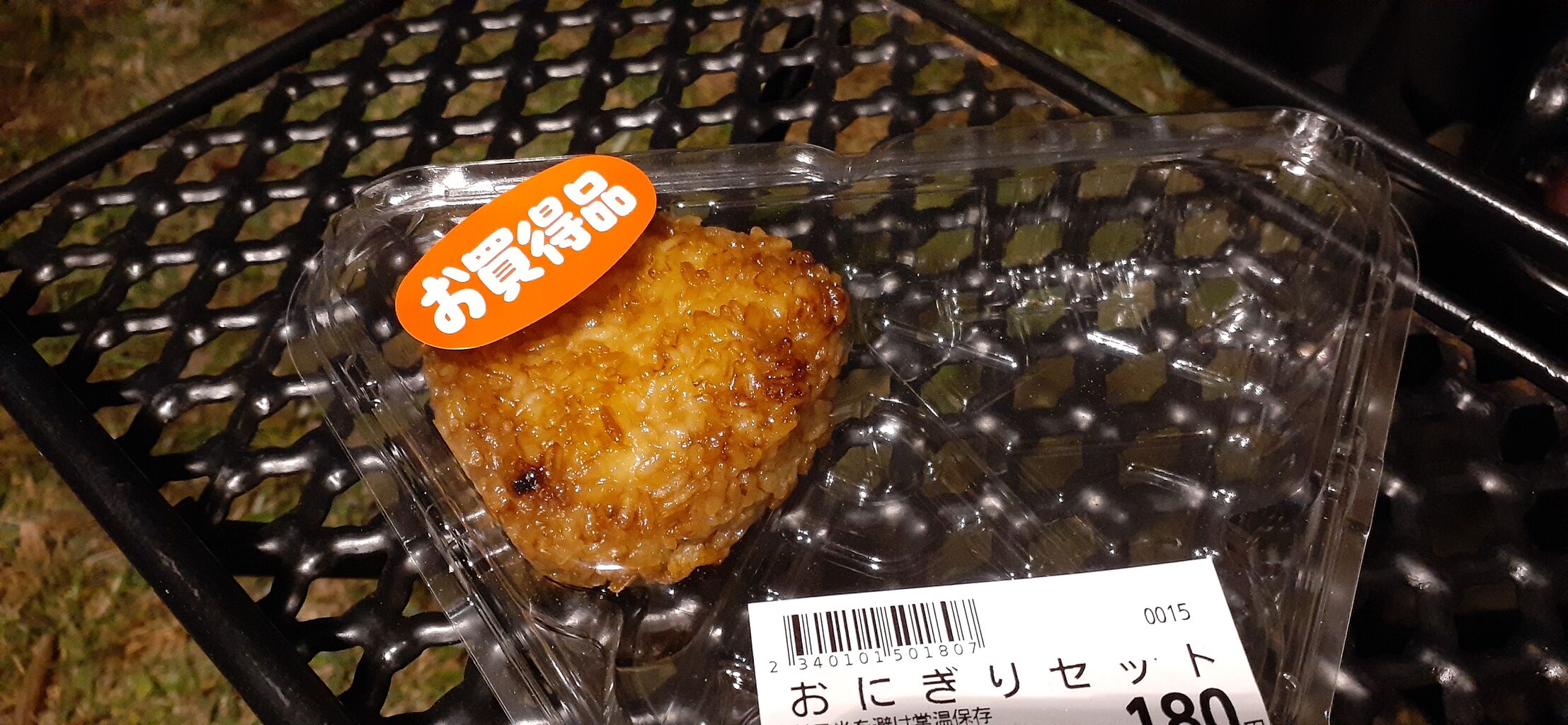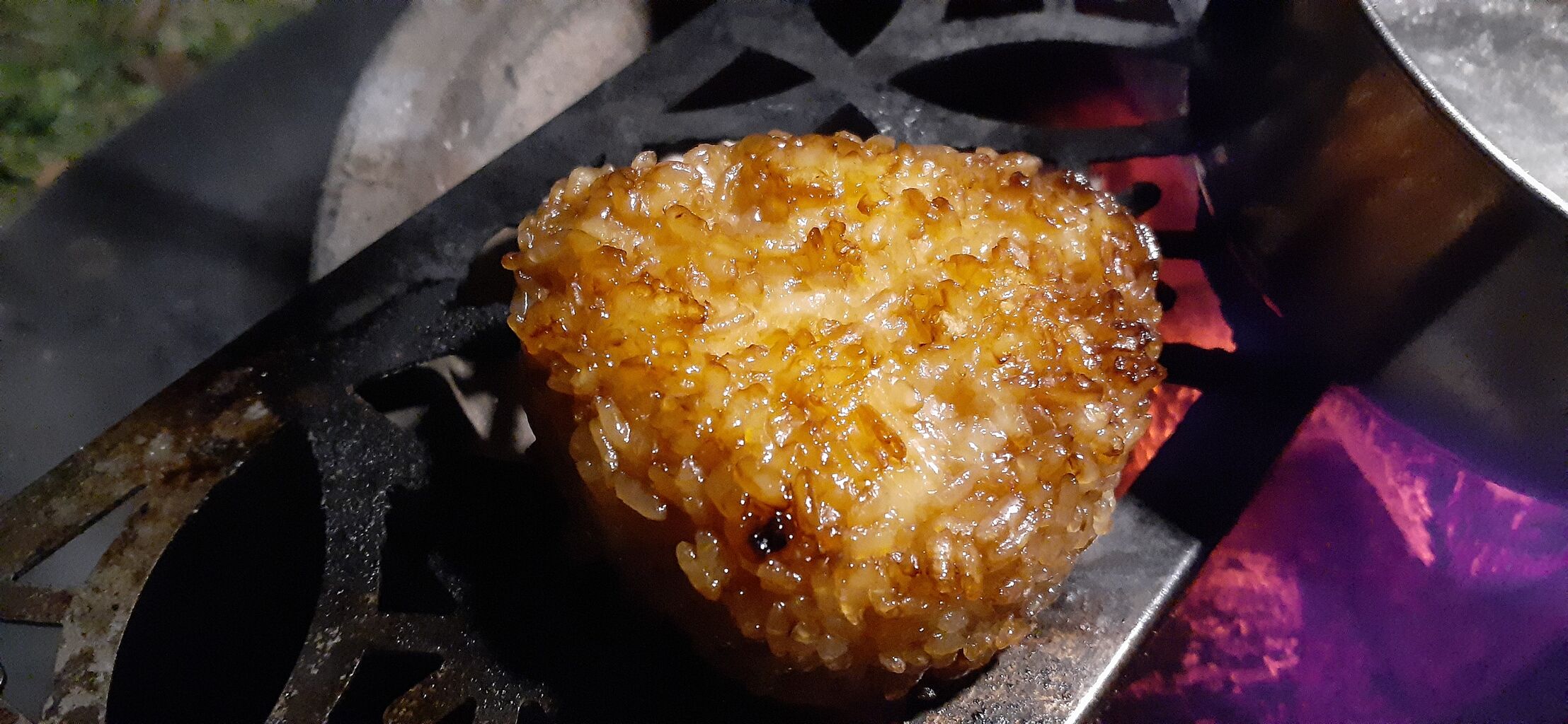 残り1個の焼きおにぎりを炭火で追い焼き。