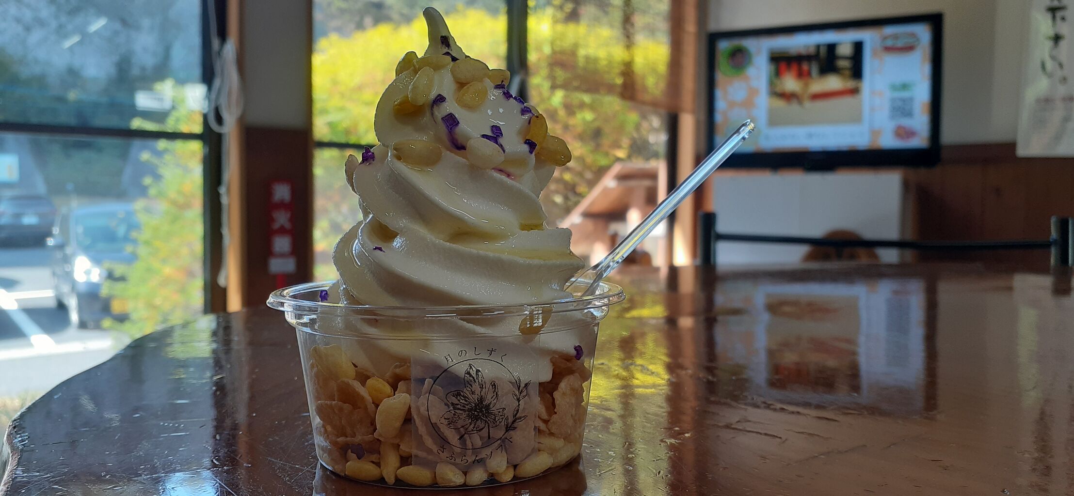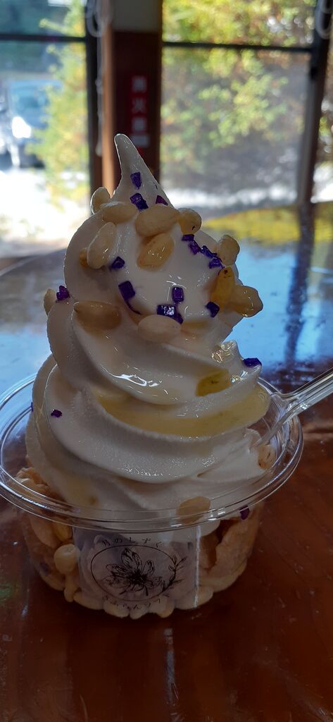 ここはかき氷入りのソフトクリームwith花びら。