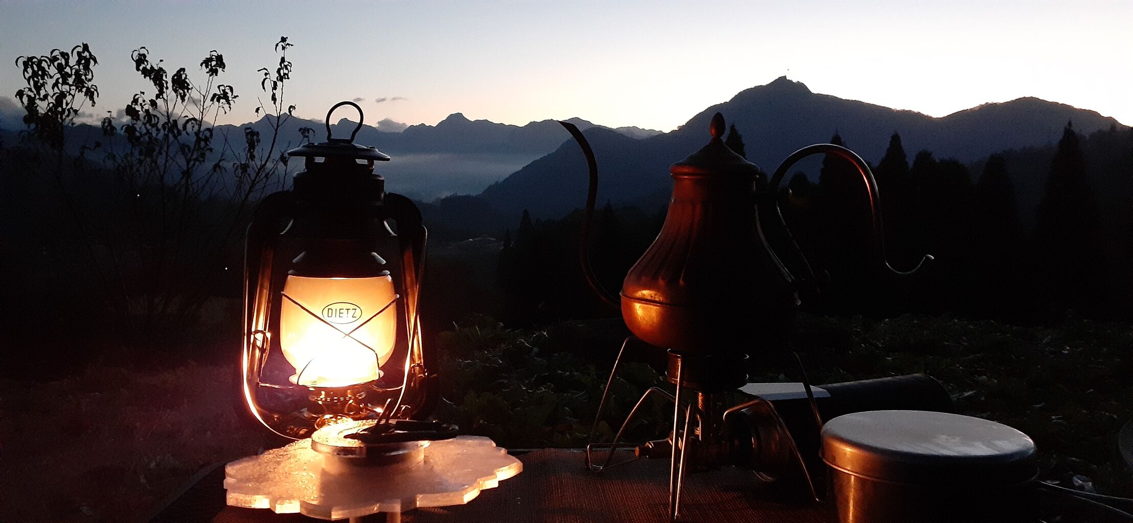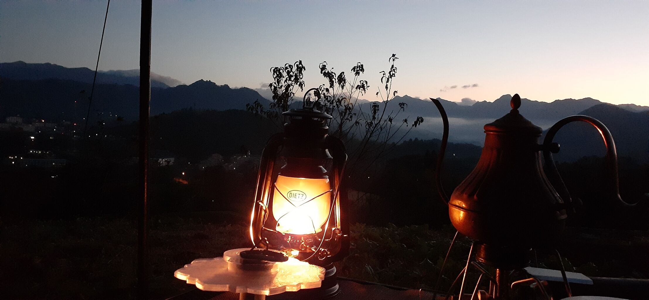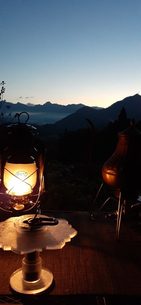 日の出が綺麗なので、ランタンと一緒に撮影