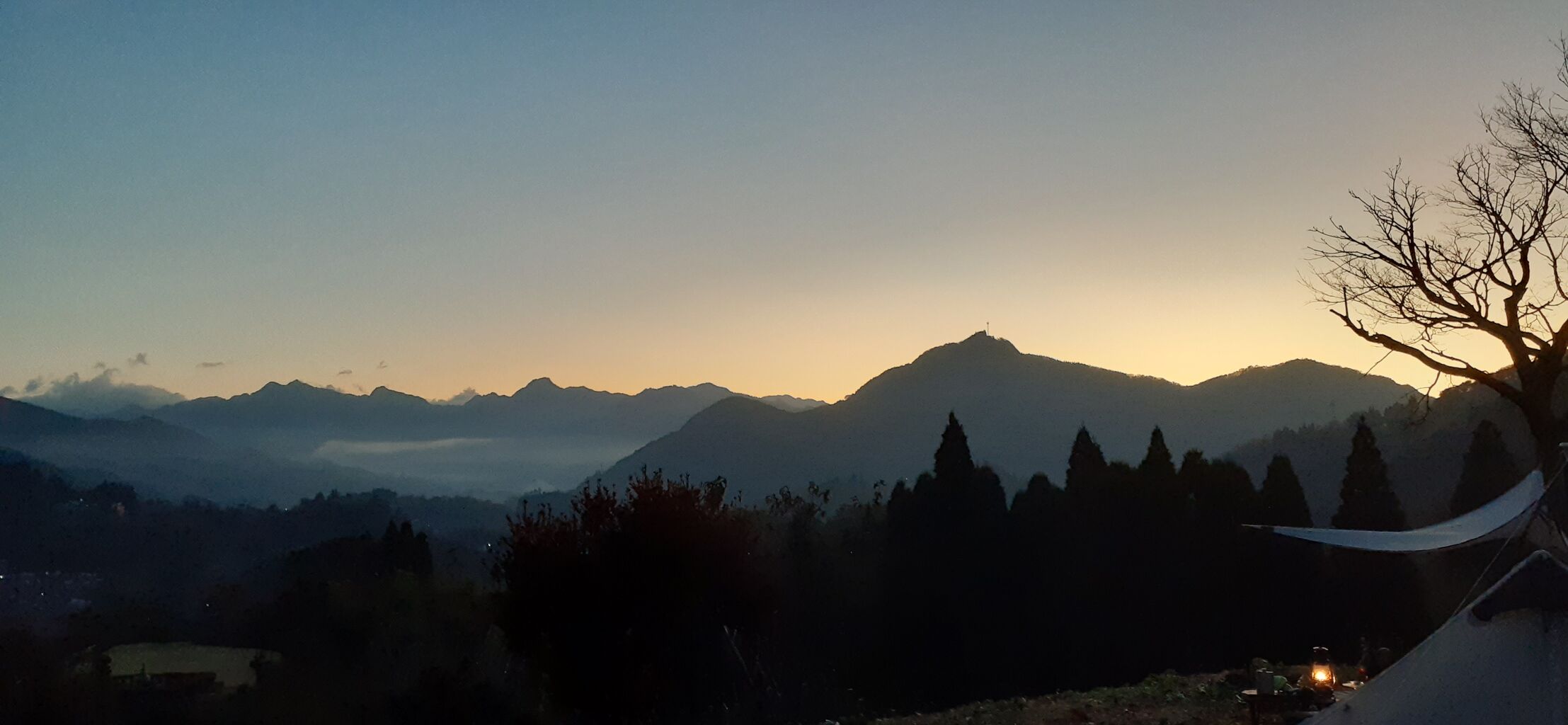 静謐なサイト、朝の静寂、陽を迎える峰々。