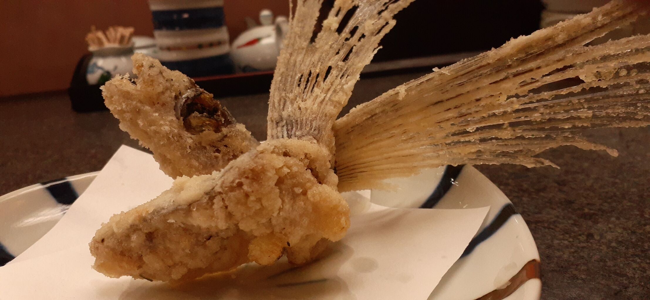 とび魚の刺身に付いてた、とび魚の頭とひれ